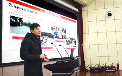 杨丙军副处长做了题为“保卫在身边,安全有保障”的主题报告,他从保卫处基本职能,日常管理,校园安全文化工作整体情况,校园交通管理,校园环境整治,校园安全培训几个方面介绍了公司安全稳定和保卫作,最后对发生在公司的安全事故具体事例进行讲解和分析,指导参会师生如何保障自己的人生安全,避免各类事故的发生。