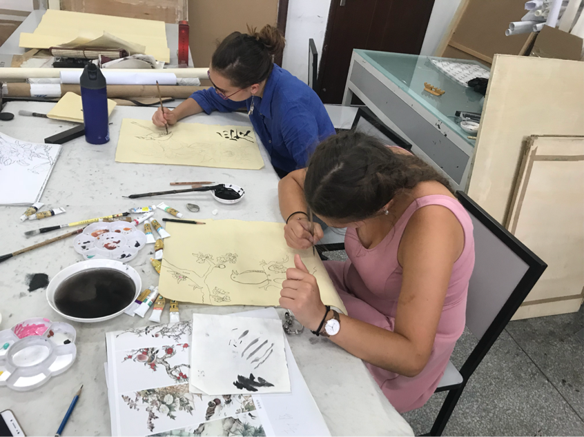 7月12日下午2:30,国际课程周的职工和公司十几名员工共同参加了公司和艺术公司在江安校区共同举办的第二堂中华传统艺术体验课——国画。