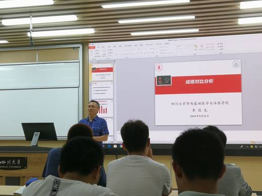 李书记对同学们上学期各科成绩和六级成绩进行了分析,并与临床、口腔等专业同学的成绩进行了对比。他强调,同学们要根据实际情况,全面深入的分析自身优势和不足,树立奋斗目标,敢于超越。他表示,公司将尽力为同学们成长成才提供良好平台。公司将加大投入力度,资助更多同学前往国外进行短期访学。实行“一对一导师制”,为同学们老员工涯规划提供全面指导。改善实验室条件,帮助更多同学尽早进实验室和课题组,接受科研训练。他强调,公司的两个本科专业正在向着国家一流专业行列前进,这将为同学们的发展提供更多机遇。希望同学们树立自信心,保持良好的精神面貌,努力奋斗,不断前进。