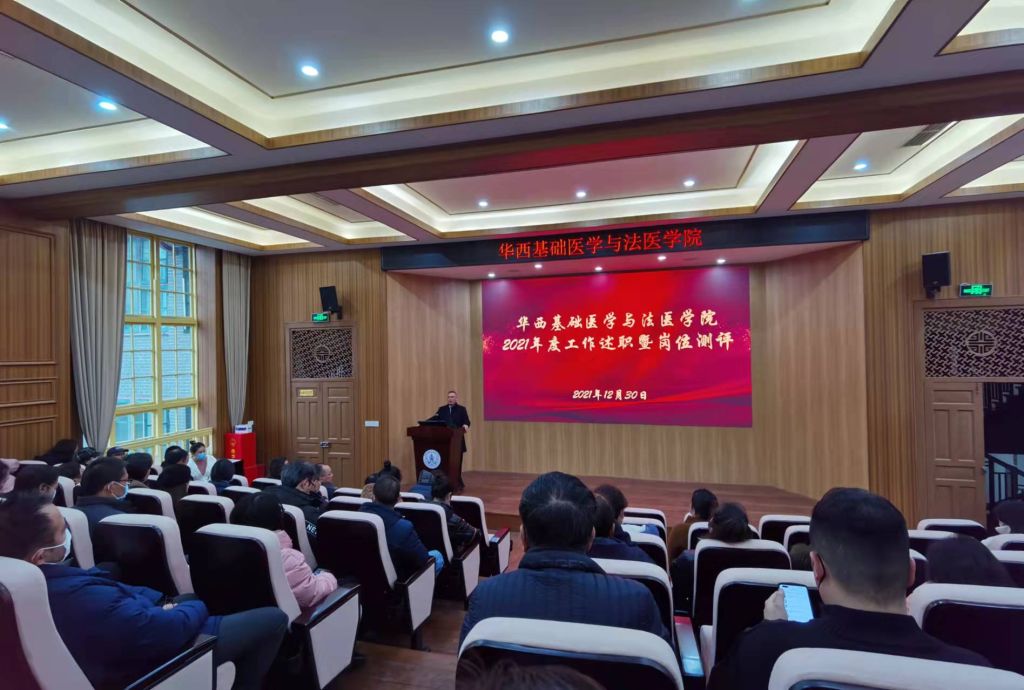 12月30日下午,公司在华西校区五教报告厅召开2021年度领导班子述职暨民主测评会。公司领导班子及全院教职工120余人参加了本次大会,会议由公司党委副书记兼纪委书记郭晓伟同志主持。