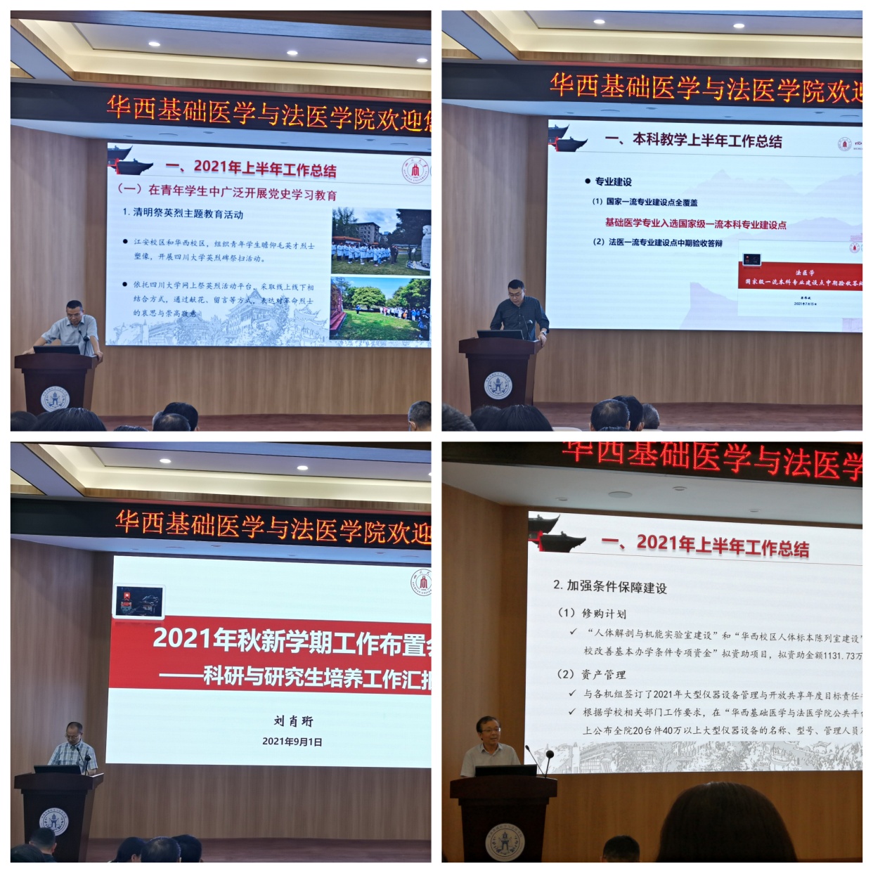 公司党委副书记郭晓伟、副经理梁伟波、刘肖珩、方定志分别结合公司会议精神在提升深造率、完善疫情防控常态下员工管理机制、持续落实并完善拔尖人才和强基计划人才培养方案、构建一流基础医学人才全面发展的培养体系、稳步推进“基础医学+”计划、筑牢安全工作防线等方面提出了新学期的工作计划与要求。