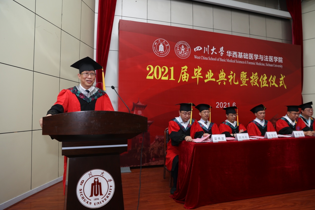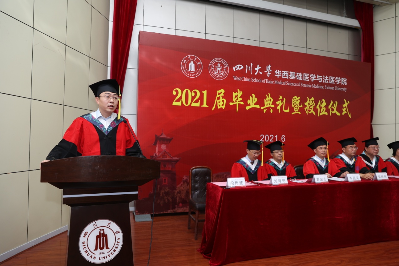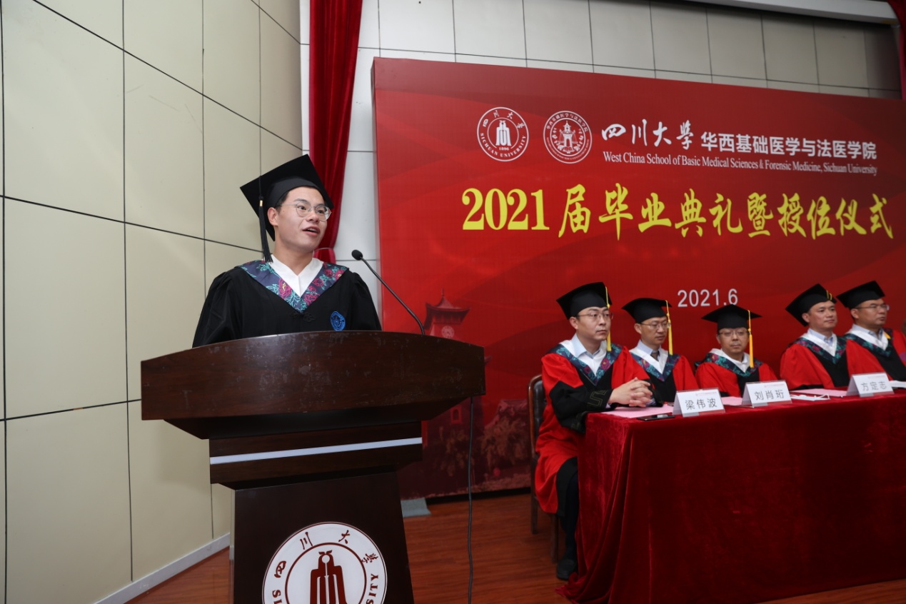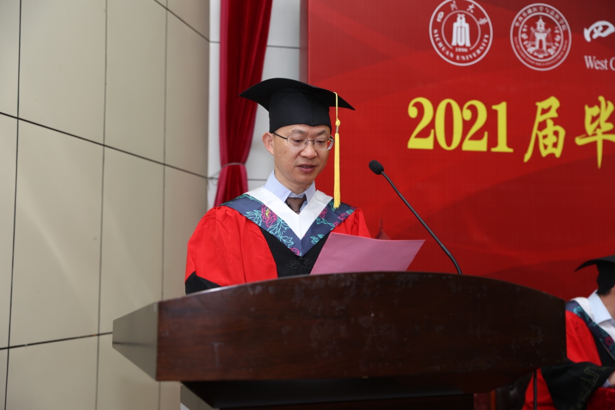 导师代表廖林川教授在发言中表示,美好人生需要靠自己勤劳和智慧去创造实现,这需要同学们具有业精于勤的求索精神和“以天下为己任”的情怀。他希望同学们要不忘初心,秉承终生学习态度,发扬华西精神,打磨专业能力,在奋斗中找准自己人生航向,把个人“小我”融入国家和集体的“大我”,在国家和社会进步中创造个人的美好人生。