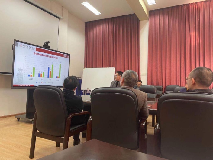 在交流会议上,邓富民教授首先介绍了商公司在团队队伍和科研工作方面的取得的成绩。随后,他讲到,人才是发展的关键,是一个公司发展的命脉,是科研任务和教学工作的根本。为了培养优秀人才,商公司制定了从“青年人才”到“领军人物”的一体化培养计划,并采用“金字塔工程”和“大数据工程”“卓越计划”“青苗计划”“猎头计划”为培养计划保驾护航。最后,邓富民教授还分享了商公司的科研工作经验,通过开展国际合作,与世界一流大学、国际著名研究机构建立长期稳定的合作伙伴关系,力争国际间重大科研合作项目,利用创新平台、引智计划等吸引海外著名学者来校开展科研合作,鼓励师生与国外学者共同发表论文等合作方式,提高科研水平和国际影响力。
