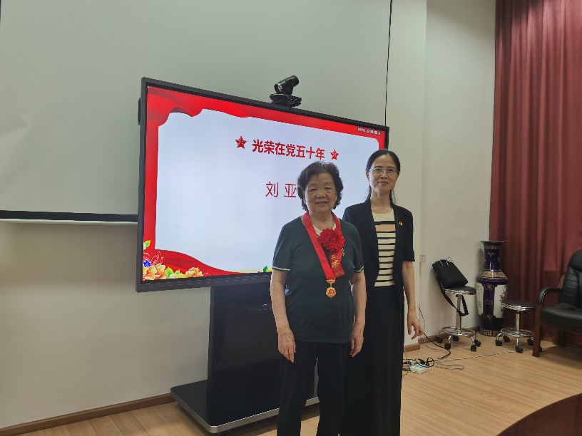 党委书记李华向李亚群同志颁发光荣在党五十年勋章