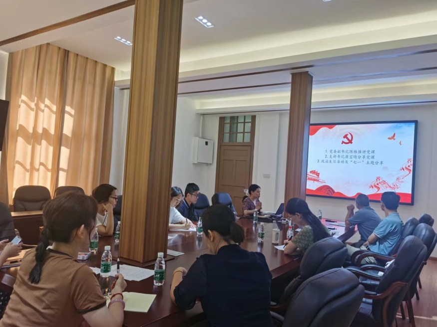 机关党支部书记蒋宝晴同志分享了“争做堪当历史重任新时代党员”为主题的党课。党课包括“回顾百年历史波澜壮阔,彰显了中国共产党历史担当者的风采”和“展望未来,争做堪当历史重任的新时代党员”两个部分。她指出,面向第二个百年奋斗目标,希望我们机关党员同志要弘扬伟大建党精神,不负光荣使命,走好新的赶考之路,争做堪当历史重任的新时代党员。