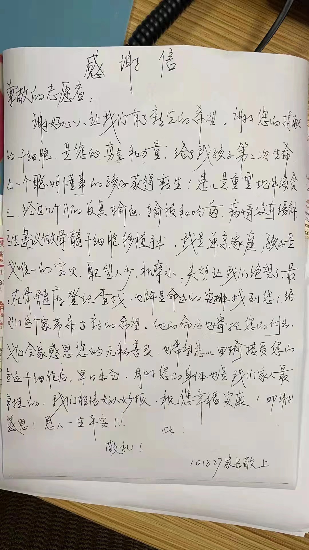 据悉,目前中华骨髓库库容为300多万份,而其中成功捐献的却只有1万多份。库容看上去很大,但由于我国患重症血液病患者人数众多,且配型相合的比例极低,仅有约十万分之一,所以每年仍有大量的血液病患者在等待HLA配型合适的供者过程中,生命就已经流逝。他提到,“凭借我一个人的力量实属有限,要挽救更多的重症血液病患者,还需要汇聚更多的爱心,如果我的行为能够带动更多人加入到这个行列中来的话,那么我觉得这才应该是捐献造血干细胞这件事情的根本目的与更大意义之所在。”他希望有更多爱心人士加入到捐献志愿者队伍中来,用实际行动拯救患者生命,促进人类健康,传递社会正能量。
