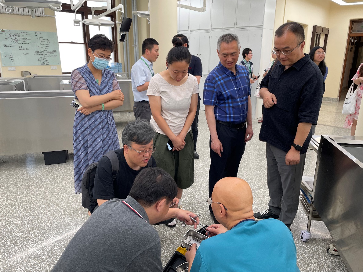 7月5日,调研组一行拜访首都医科大学基础医公司。首医基础公司党委书记王伟等领导、解剖学系主任高艳及一线教师、管理人员与调研组成员进行了座谈。针解剖教学对空间和团队要求高、教学产出慢的特点,王伟书记就如何留住人才、获得持续性资金支持分享了首医的经验,她指出,要在解剖课程中挖掘思政元素,建立符合学科特点的晋升体系、鼓励教师多条腿走路。解剖学系主任高艳从团队队伍、课程建设、环境提升等七个方面,与大家进行了交流。之后,调研组到首医形态楼实地调研解剖实验室。李昌龙经理表示,首医的解剖实验室干净、先进、有特点、有情怀,其设施设备的建设和日常运行均值得学习。