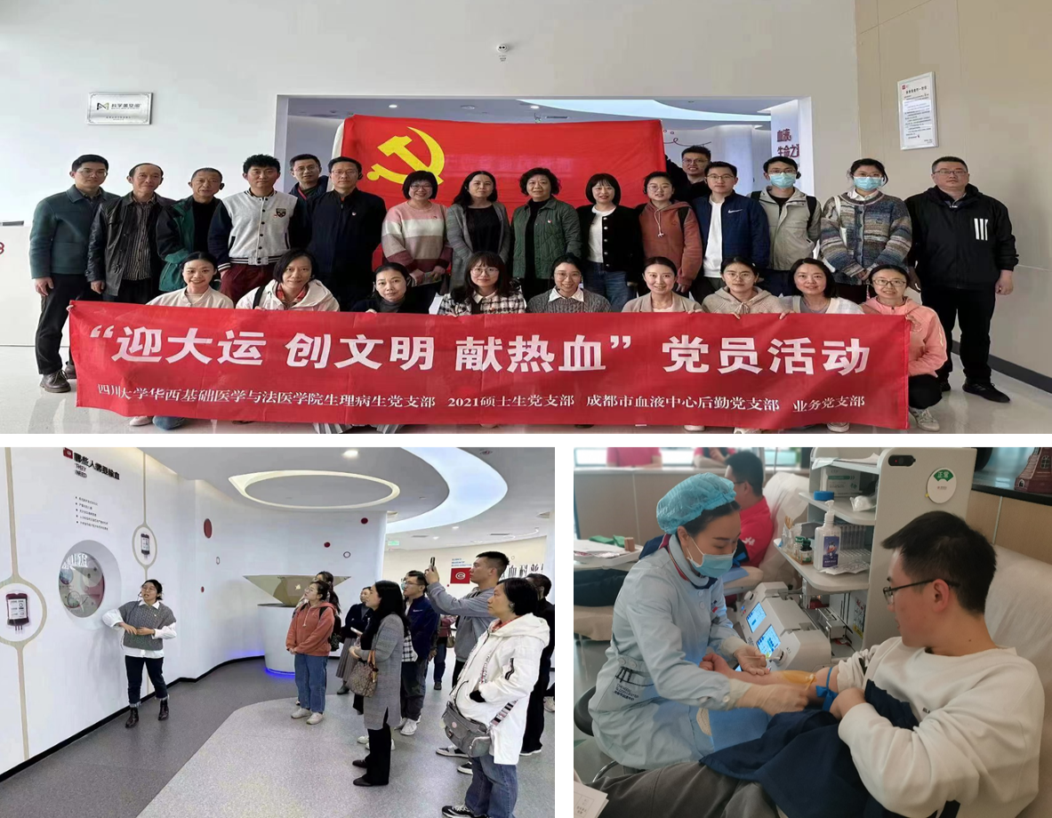 4月7日上午,生理病生教师党支部联合2021级硕士员工党支部参观了成都市血液中心,并和成都市血液中心后勤党支部、业务党支部共同开展了“迎大运 创文明 献热血”主题党日活动。