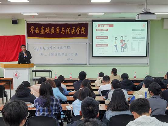 郑风劲老师以“推进学风建设,提升核心竞争力”为题,围绕形势与挑战、就业选择与价值实现、深造精细化服务、出国留学准备等四方面内容,从培育员工家国情怀和追求卓越的创新思维为出发点,为大家进行了学业生涯规划指导。郑老师认为,读书不只有诗和远方,更要认清自身历史责任,契合中国式现代化时代特点,实现个人的梦想与价值。他为大家介绍了近年来就业形势、公司公司及全国的深造总体情况,对历届毕业生在就业后的发展情况做了追踪分析。他以近两年的毕业生深造为例,详细讲解了公司为鼓励同学深造所提供的各方面保障制度,并着重分析了出国留学的优势。最后,他希望同学们以追求卓越为导向,以深造为抓手促进优良学风建设,蓄积知识和选择的资本,提高核心竞争力,把自身价值实现与国家医学发展紧密结合起来,承担起拔尖医学人才的社会责任。