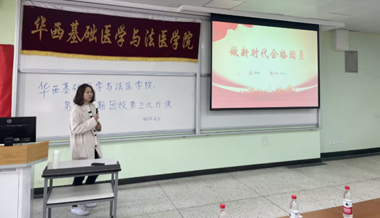 首先,董老师以《做新时代合格团员》为题,从对共青团的认识、不忘初心跟党走、做新时代合格团员三个方面进行了讲解。她指出,同学们作为新时代的共青团员,是中国新青年中的优秀代表,希望大家要坚定共产主义理想和信念,历练品格与素质,时刻牢记使命,探索适合自己的学习方法,注重日常积累,不断提升自我,在同学中发挥先锋模范作用,争做有理想、敢担当、能吃苦、肯奋斗的新时代好青年。