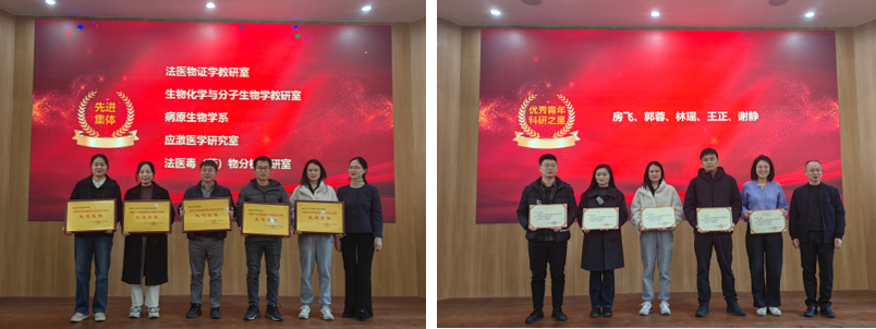 弘扬榜样催人奋进,公司表彰了2024年度荣获院级先进称号的集体和个人。罗海玻宣读先进集体、先进个人、优秀青年科研之星、本科教学先进青年教师、公共事务之星的表彰名单,公司领导班子成员为获奖老师颁发荣誉证书奖状,对获奖集体和个人表示热烈祝贺。并邀请先进集体代表法医物证学教研室主任宋凤老师和生物化学与分子生物学教研室林佳老师分享经验,从团队队伍建设、人才培养、教学科研方面分享教研室的好做法好经验。