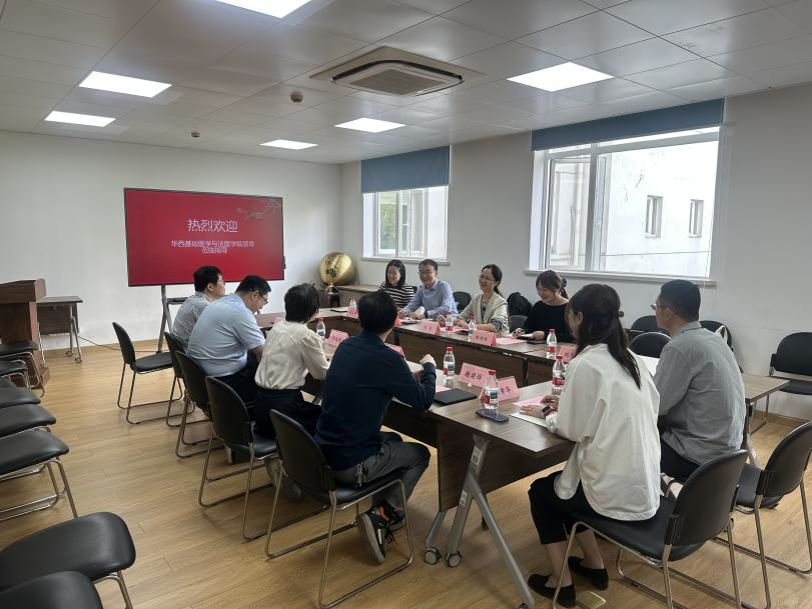 在上海交通大学,调研组一行与交大基础医公司党委书记童雪梅、党委副书记张晓波、副经理徐立均及相关部门同志进行交流座谈,双方详细介绍了公司发展现状,并重点就党建、团队队伍建设、人才培养等工作进行了交流。在人才招聘环节,李华向与会人员介绍了公司的重点研究领域,并解读了公司和公司的人才支持政策。
