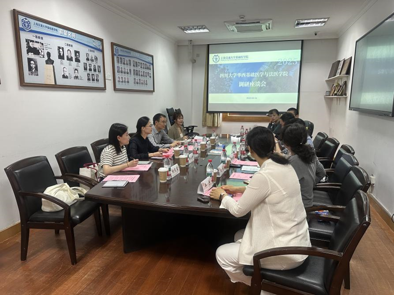 在复旦大学,调研组一行与复旦大学法庭科学研究院经理李成涛、副经理黄平、张素华,复旦大学基础医公司法医系主任沈忆文及相关部门同志进行交流座谈,法庭研究院在多学科交叉融合方面的先进经验做法令调研组印象深刻,双方希望今后加强在法医学科各领域的交叉与合作,共同为法治中国建设贡献力量。