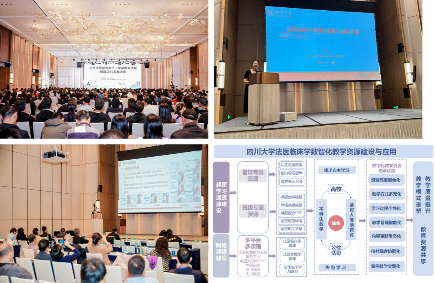 公司法医临床学教学团队作为本次大会唯一受邀的教学团队,由范飞副教授代表团队在会上作了题为《法医临床学课程群智能化建设进展》的专题汇报。法医临床学教学因其学科知识体系庞杂、内容与法律法规深度融合、更新快、应用性强等特点,在教学工作中面临诸多挑战。此次报告系统展示了法医临床学教学团队在公司与公司的支持下,由邓振华教授总体策划,在教学资源线上线下融合建设方面取得的系列成果。通过多年的不懈努力,教学团队建成了法医临床学慕课(国家级一流本科线上课程)、法医影像学慕课两门线上课程,更依托公司智慧教育平台——大川学堂搭建了法医临床学AI课程,利用超星学习通实现了各种教学资源的高度汇聚与融合,构建起丰富多样线上教学资源体系的同时,教学团队更是持续推进线下课程与鉴定实务相结合的教学内容与教学方式的改革。