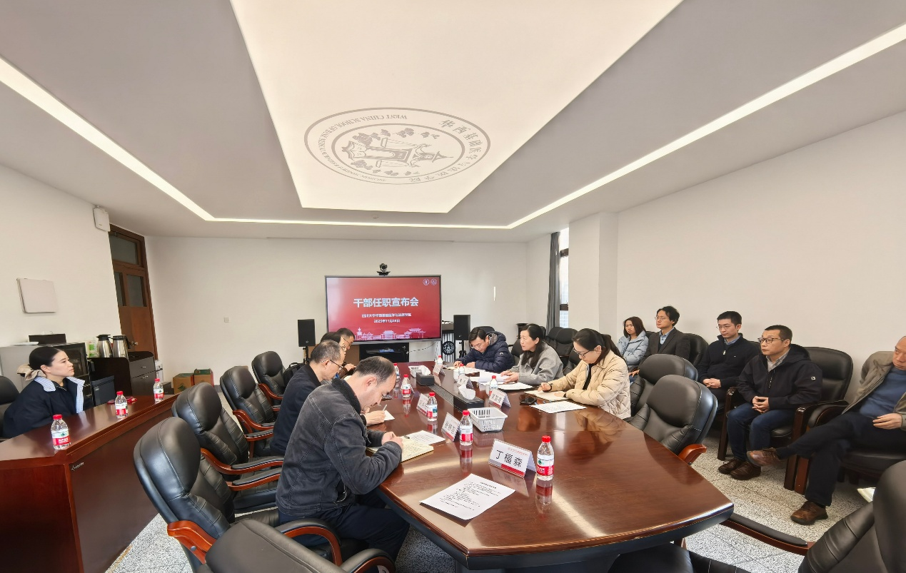 11月28日,公司在华西校区逸夫楼229会议室召开干部任职宣布会。公司党委副书记黄园,党委组织部副部长黄雯雯,公司领导班子成员、党委委员、纪委委员、科级干部、教工党支部书记、教研室主任和教职工代表参加会议。会议由公司党委书记李华主持。