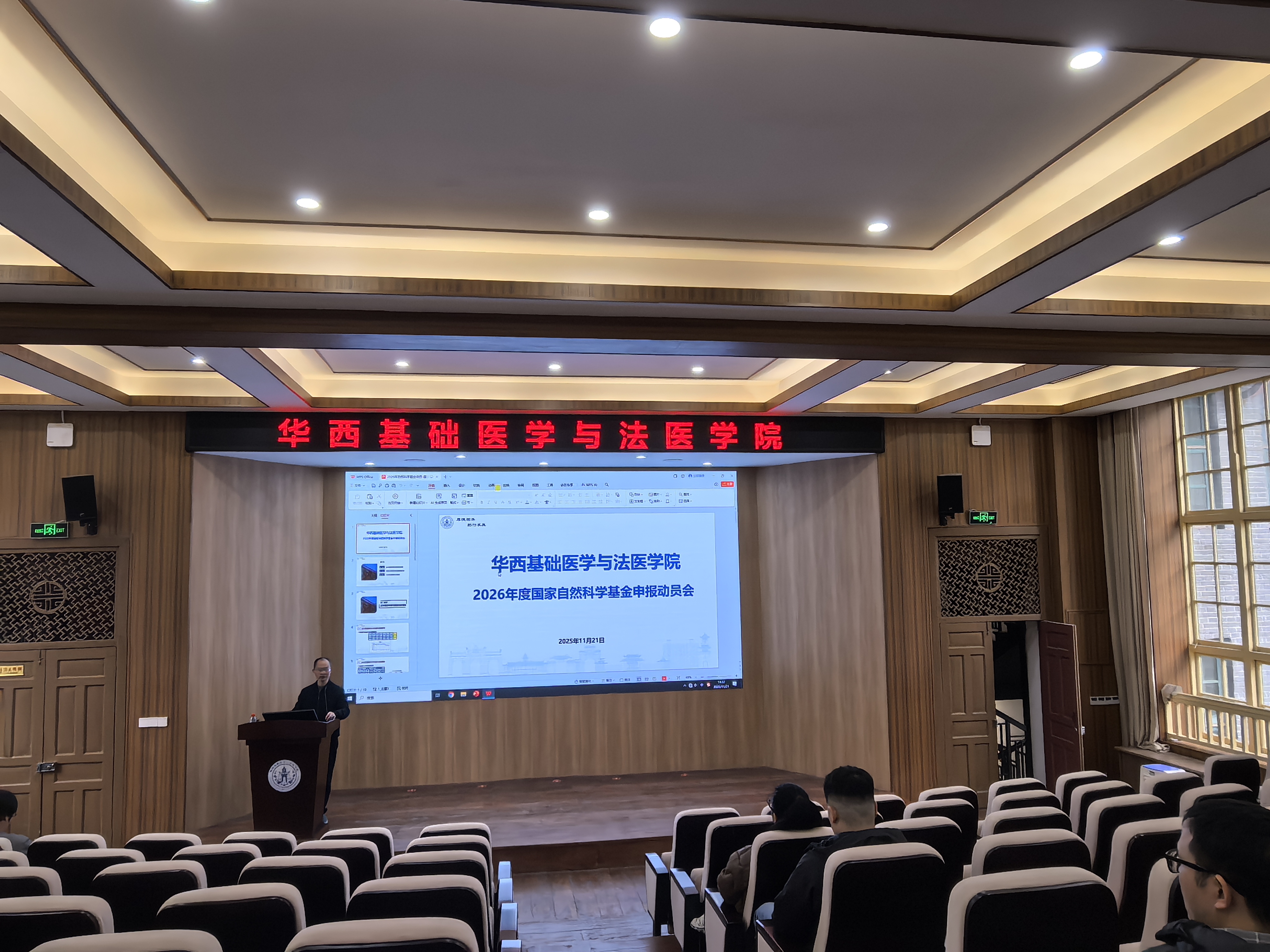 2025年11月21日下午14点30分,公司在华西五教报告厅举行2026年度国家自然科学基金申报工作会,会议由刘肖珩副经理主持。