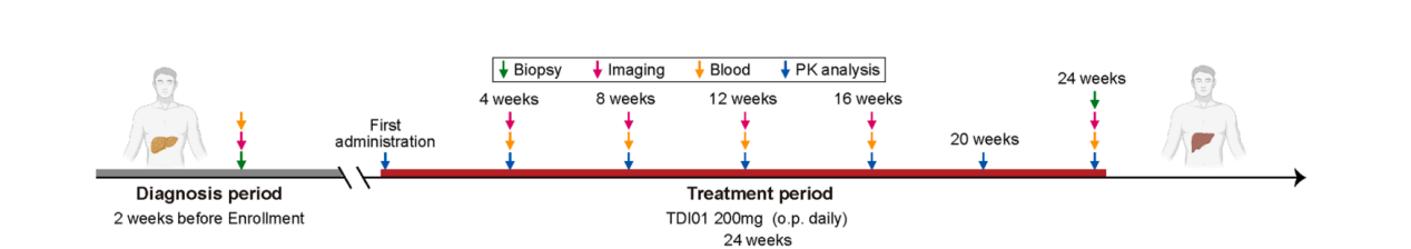 临床前数据进一步验证了其前景,研究团队不仅利用小鼠纤维化及MASH模型还采用代谢与肝脏结构接近人类的小型猪。在小型猪MASH模型中,TDI01治疗9个月能显著改善纤维化、炎症、脂肪变性并同步改善肝脏硬度与内皮功能。更关键的是,扫描电镜证实TDI01有助于逆转肝窦内皮的病理性“毛细血管化”(capillarization),促进其“开窗”(fenestration)表型的恢复。这一结果验证了TDI01抗纤维化的效果,为临床奠定了基础。