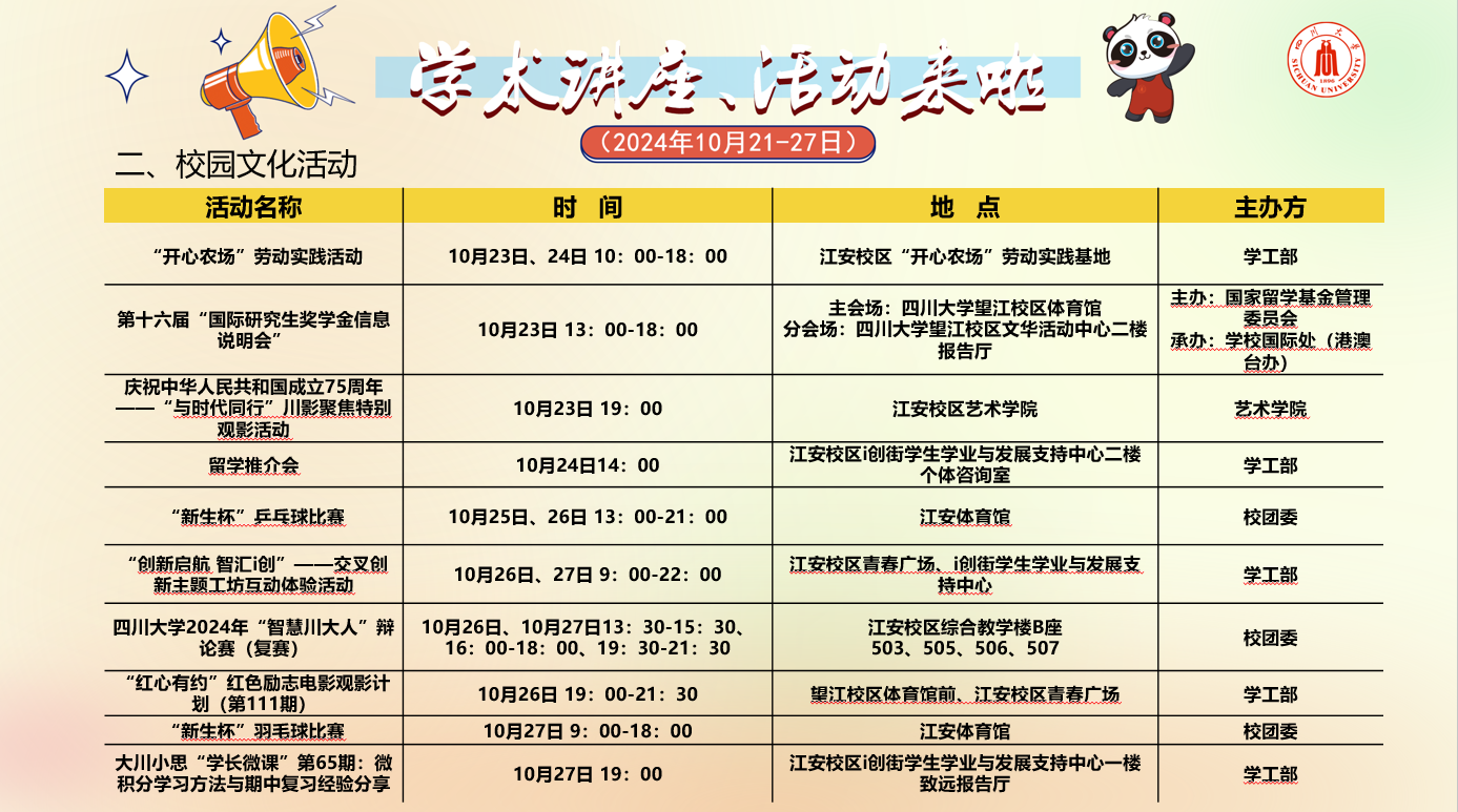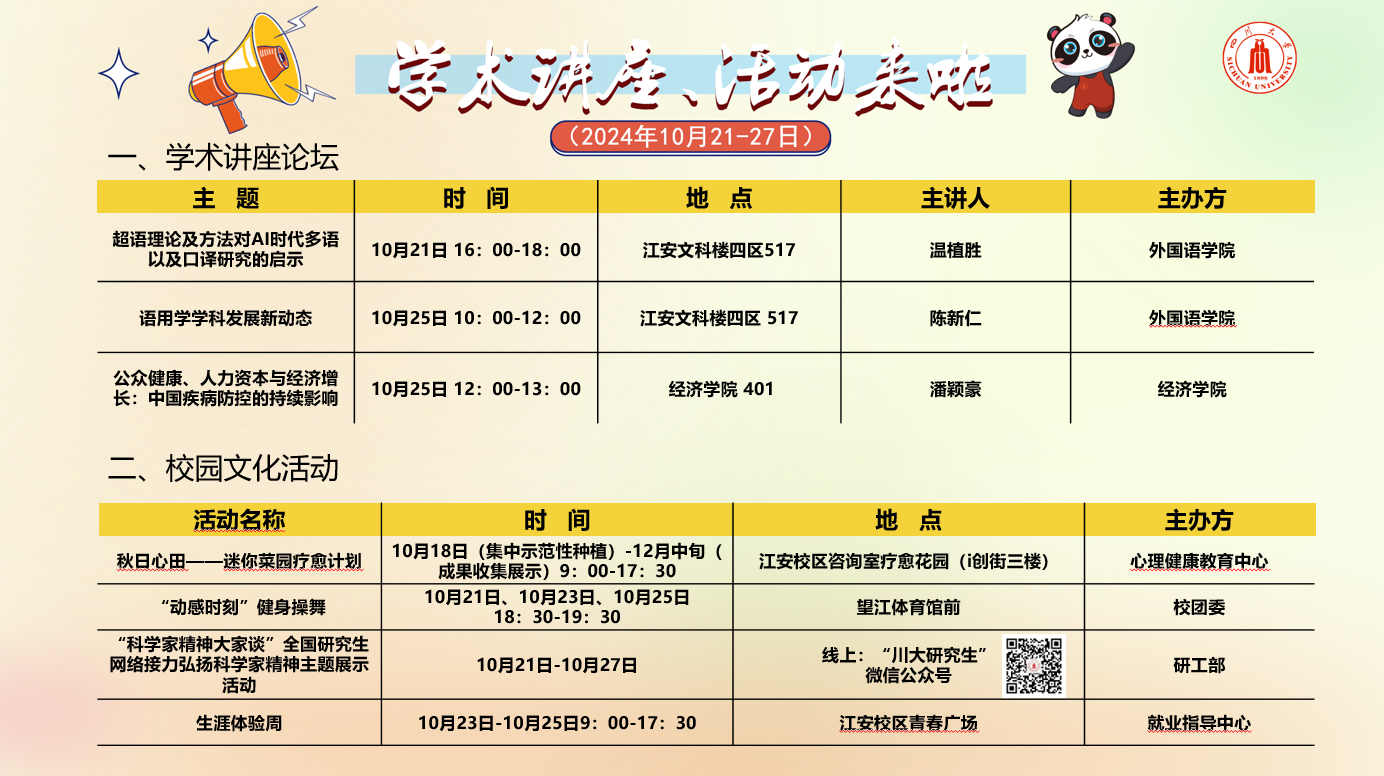 365英国上市集团2024年10月21-27日学术讲座论坛及校园文化活动预告