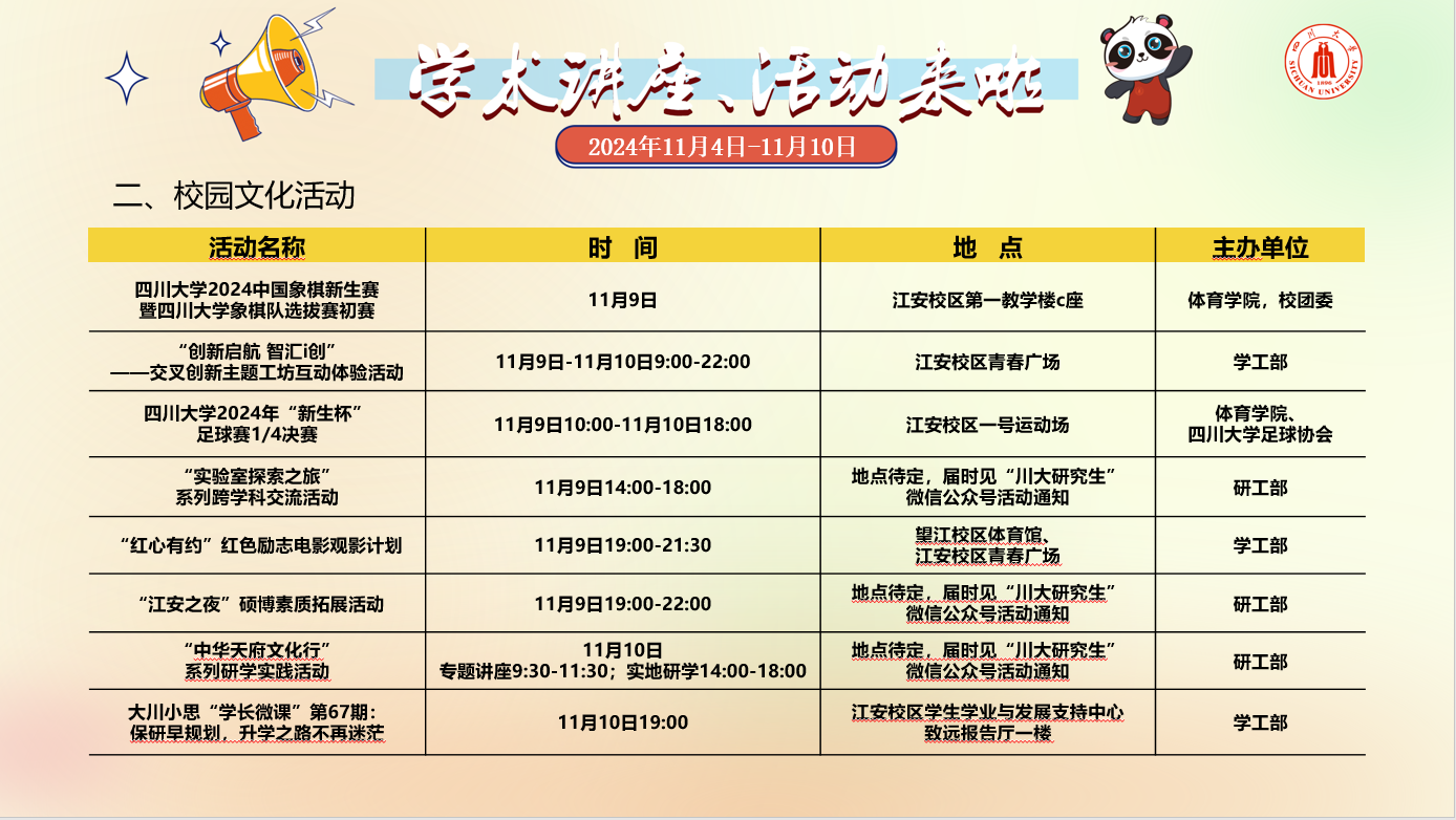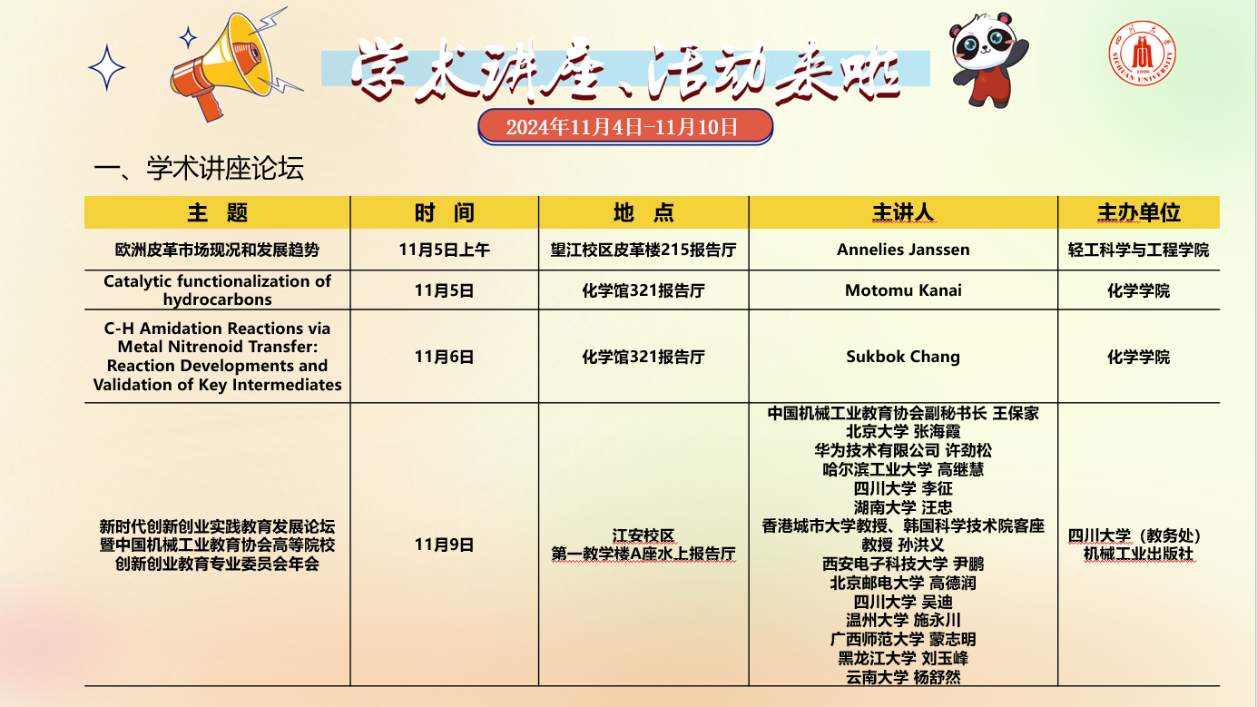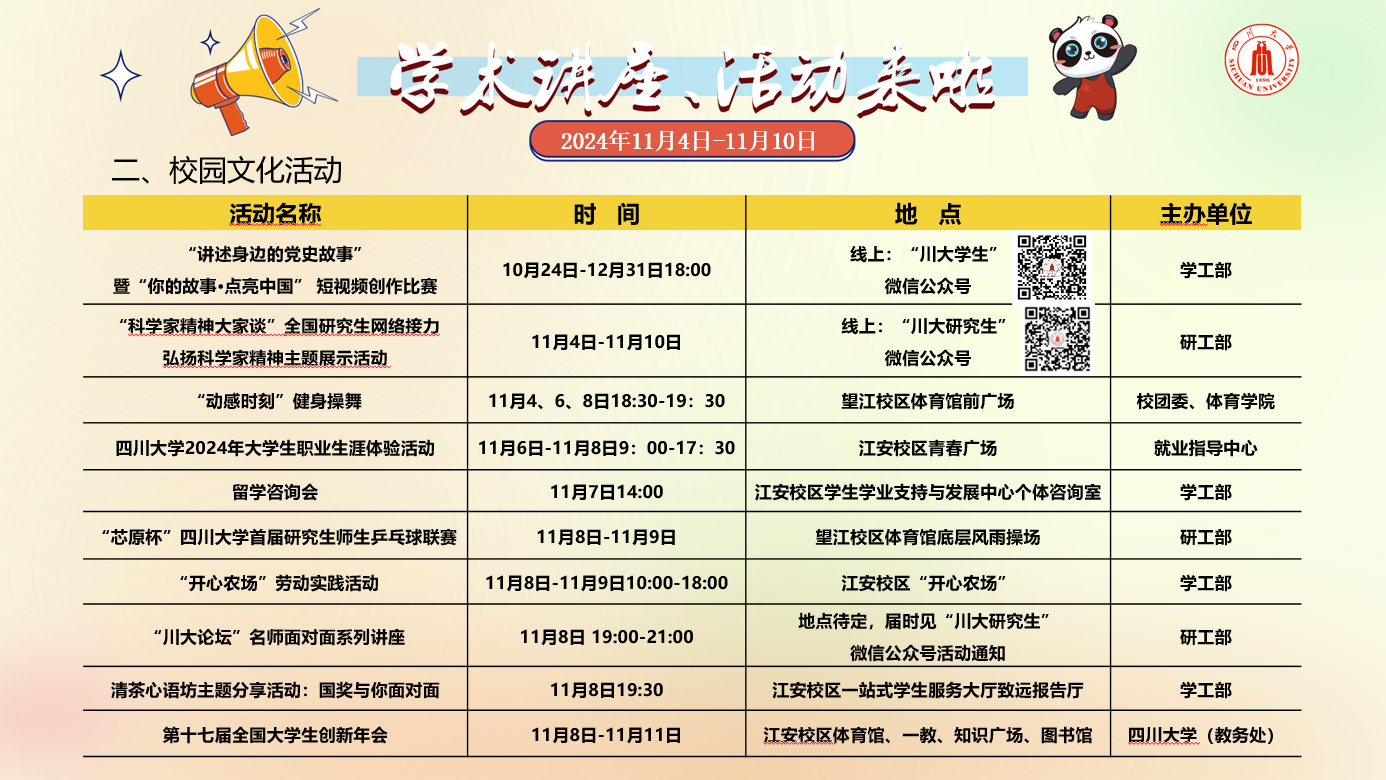 365英国上市集团2024年11月4日-11月10日学术讲座论坛及校园文化活动预告