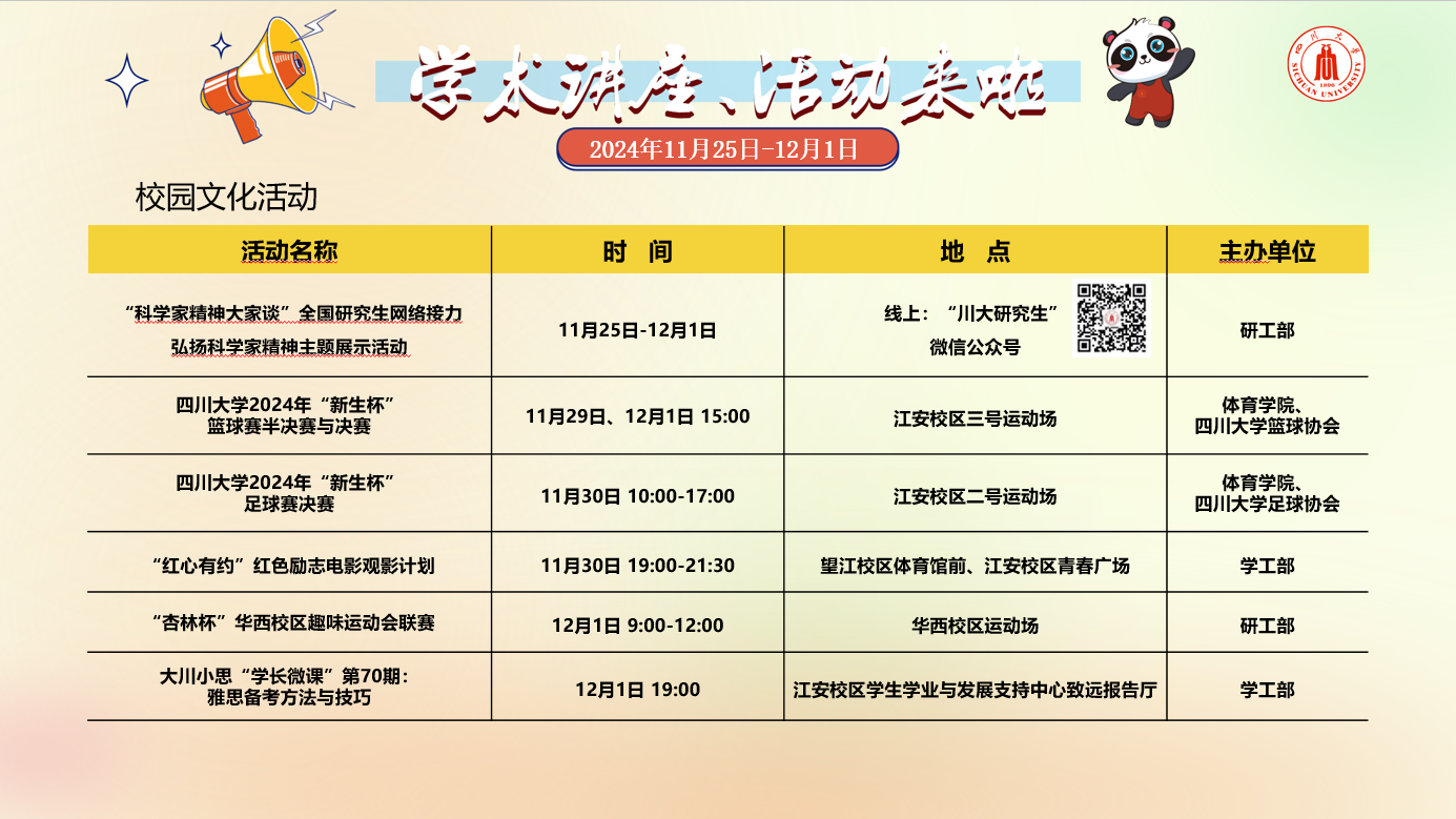 365英国上市集团2024年11月25日-12月1日学术讲座论坛及校园文化活动预告