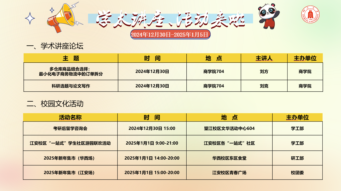 365英国上市集团2024年12月30日-2025年1月5日学术讲座论坛及校园文化活动预告