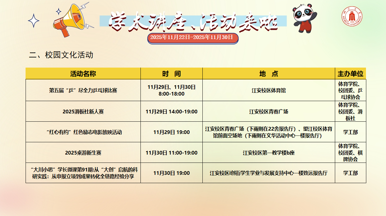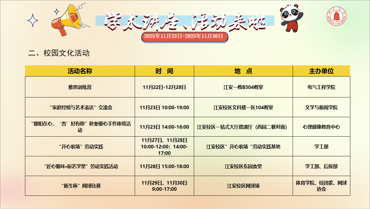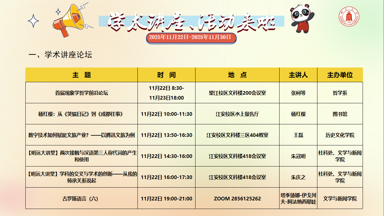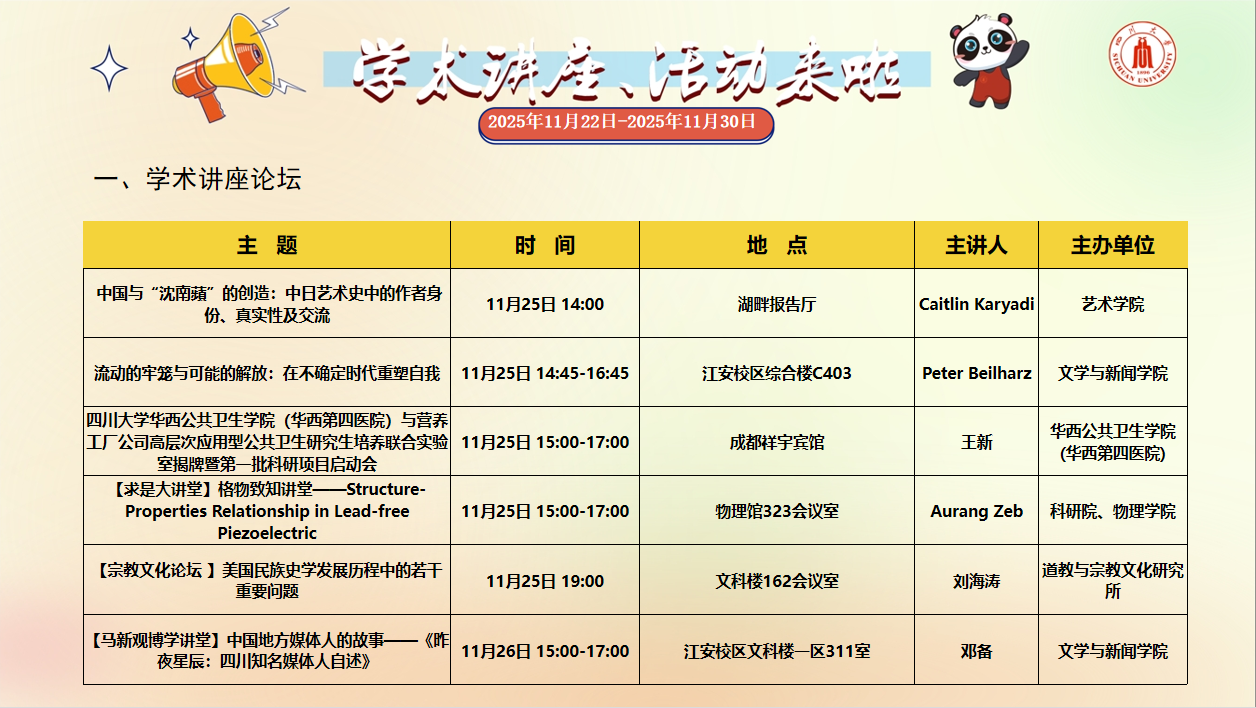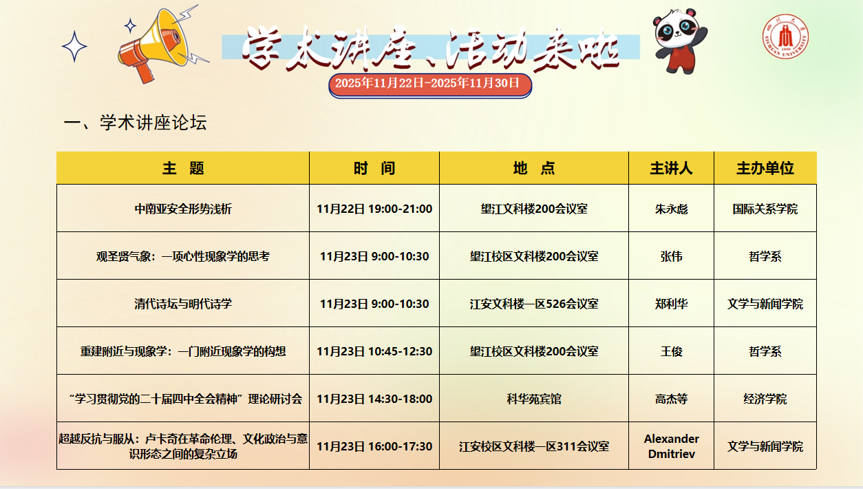 365英国上市集团学术讲座论坛、校园文化活动预告(2025年11月22日-11月30日)