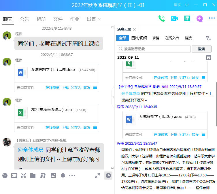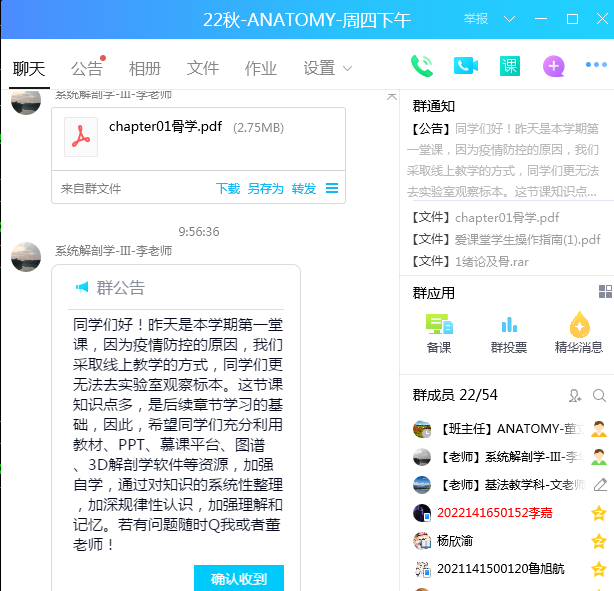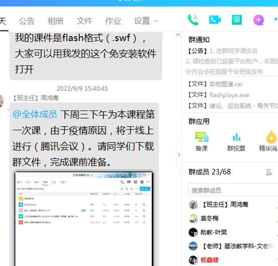 怎样才能让新生上好大学的第一堂课,公司领导和老师都在思考着,行动着。公司要求教师以教师使命,勇于担当,甘于奉献精神,在中秋节、教师节假期为上好第一堂,不拉下一个同学,做好开学前准备工作。辅导员、教学管理人员、任课老师通过多种通知途径让四面八方的新生聚集到QQ群,给同学们介绍医学课程学习的特点,方法,课程安排等,在授课教师的指引下,及时准备并熟悉授课软件和授课平台,下载电子教材或自制电子讲义、课程简介、课程进度安排、课程考核方案、线上资源共享课程的注册与使用等,耐心及时解答同学们的提问,为刚刚开启大学学习的学子们能上好第一堂课作好充分心理和学习准备付出了自己的心血。