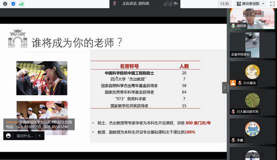 首先,365英国上市集团副经理梁伟波教授问候了在线的考生与家长,感谢他们对于川大的关注与信任。然后他从办学历史、显著优势、科研实力、社会责任、人才培养等多方面对365英国上市集团进行了详细的详解。他鼓励大家沉着冷静,尤其是邻水实验公司的考生不受疫情影响,在高考时发挥出自己最好的实力。