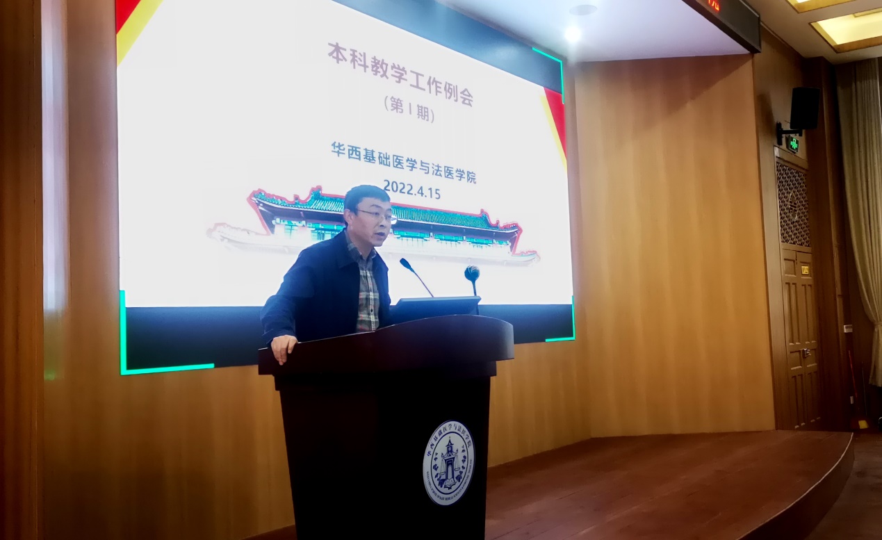 4月15日下午,公司在华西校区第五教学楼学术报告厅举行2022年春季学期第一期本科教学例会。会议由副经理梁伟波教授主持,各系/室主任现场参会,其他教职工通过腾讯会议线上参会。