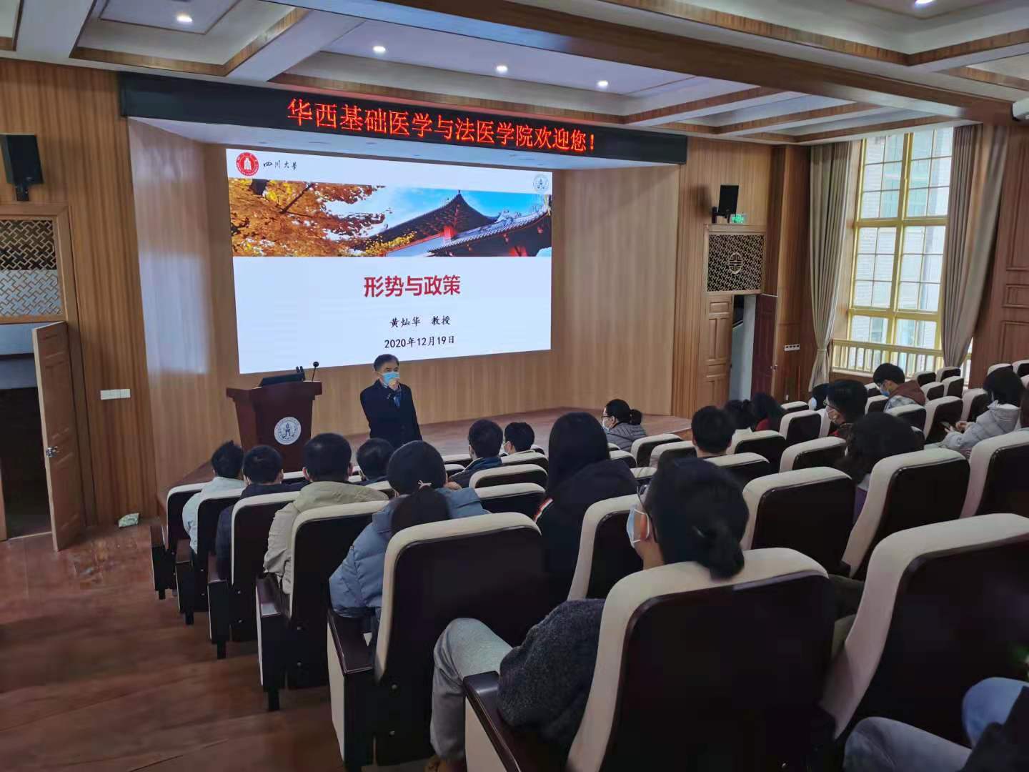 12月19日下午,公司经理黄灿华教授在五教公司报告厅为2017级本科生讲授了一堂精彩生动的形势与政策思政课。