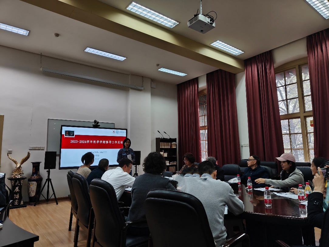 首先由教学科刘育言对2023-2024学年秋季学期教学督导工作进行总结。总结过程当中,督导老师们积极讨论督导过程中遇到的问题,对问题的解决建言建策。