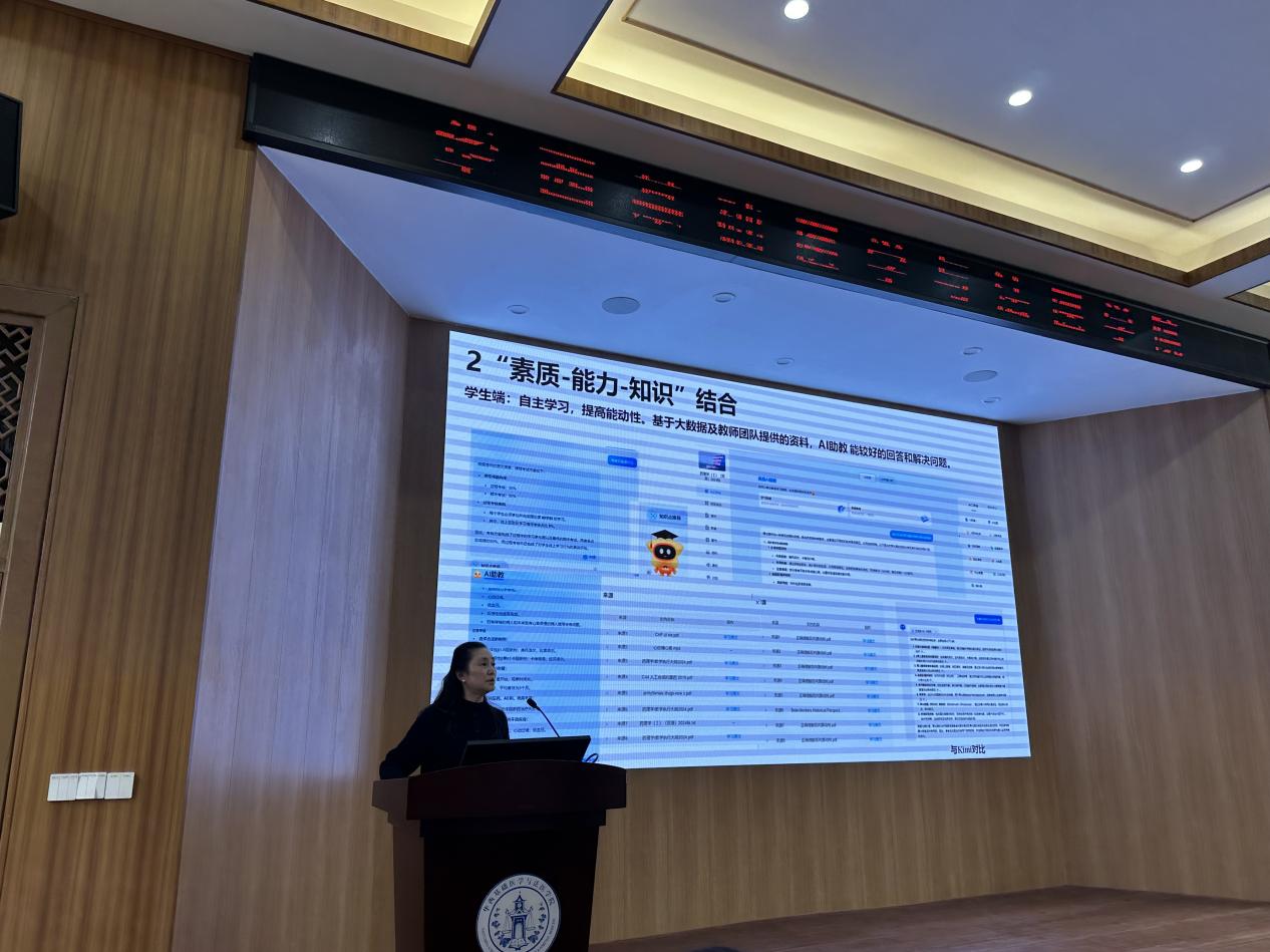 接着,药理教研室朱玲教授分享了药理学AI课程组的建设工作。她谈到,药理教研室一直以来非常重视课程的优化改革创新,此次AI课程项目是在以往一流课程建设的基础上,更加注重运用各种数字化平台教学资源,通过整理和输入教师团队的专业资料,个性化打造“素质-能力-知识”相结合的精品课程。