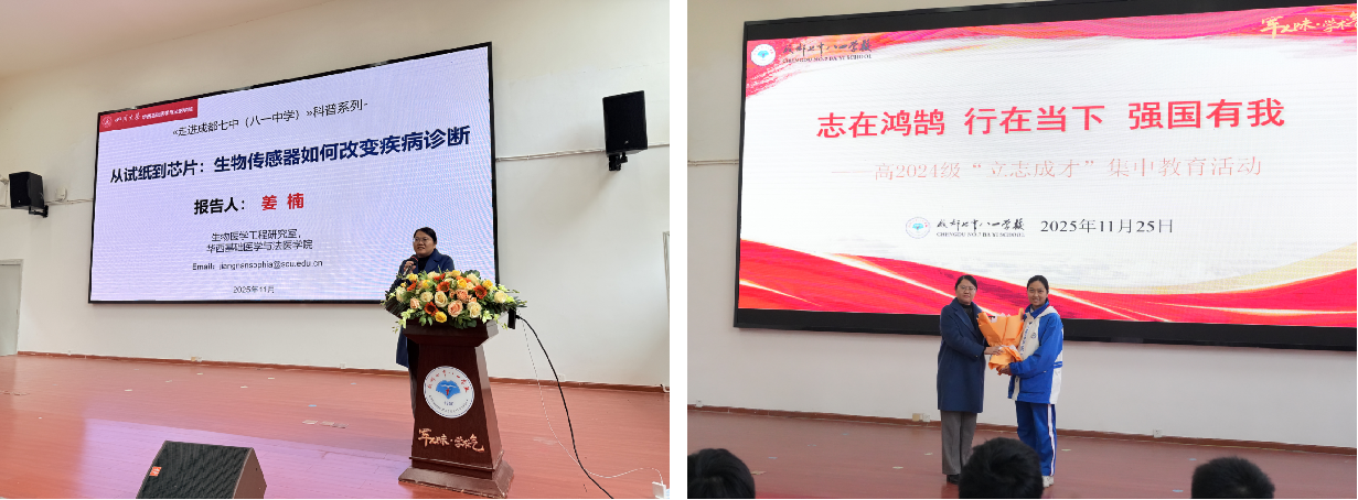 11月25日下午,公司姜楠教授应邀前往成都七中八一公司,为300余名高二员工带去了题为“从试纸到芯片:生物传感器如何改变疾病诊断?”的科普讲座。
