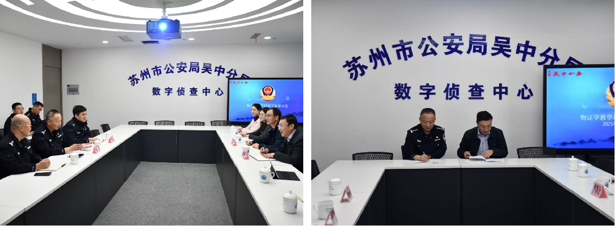 在苏州市公安局吴中分局,党委委员、副局长陈勇,刑警大队党总支书记、大队长王韦伟,党支部副书记李永生等领导共同参会。双方回顾了长期稳定的合作历程,并就加强人才双向交流、推动理论与实践深度融合达成共识。
