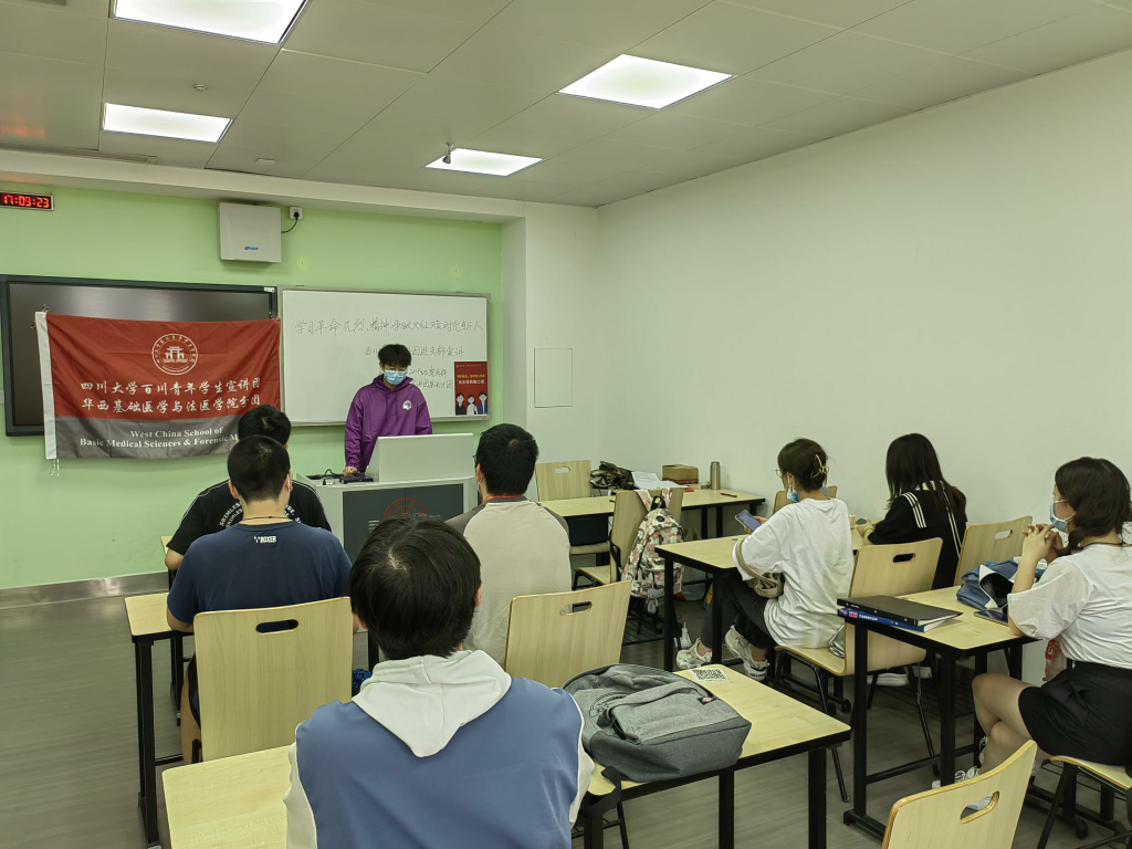 张灵轩同学号召员工党员做新时代传承红色革命精神的排头兵用理论武装思想,用专业所学回馈社会。宣讲结束后,同学们分组展开讨论,踊跃表达了对传承红色革命基因,树立爱党爱国情怀的决心和思考。