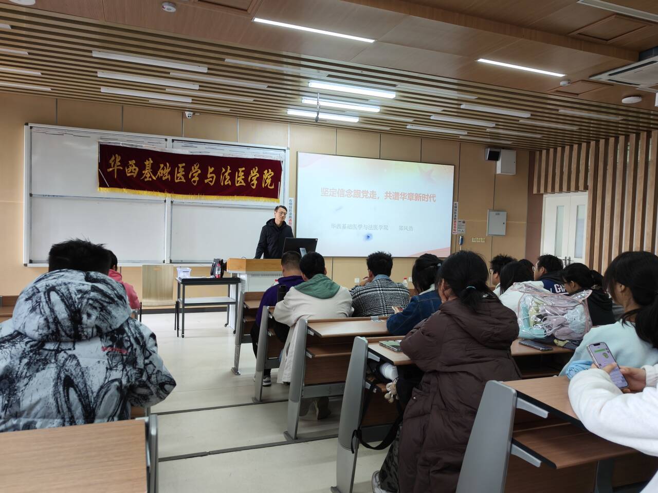 在合唱中国共青团团歌后,郑风劲老师以“坚定信念跟党走,共谱华章新时代”为题,简述了中国共产党诞生的背景、阶级基础,党的本质和奋斗目标以及加入中国共产党的流程与要求,鼓励大家不仅思想上要积极向党组织靠拢,还要以实际行动努力学习,不断提高专业能力,勇担国家发展重任。