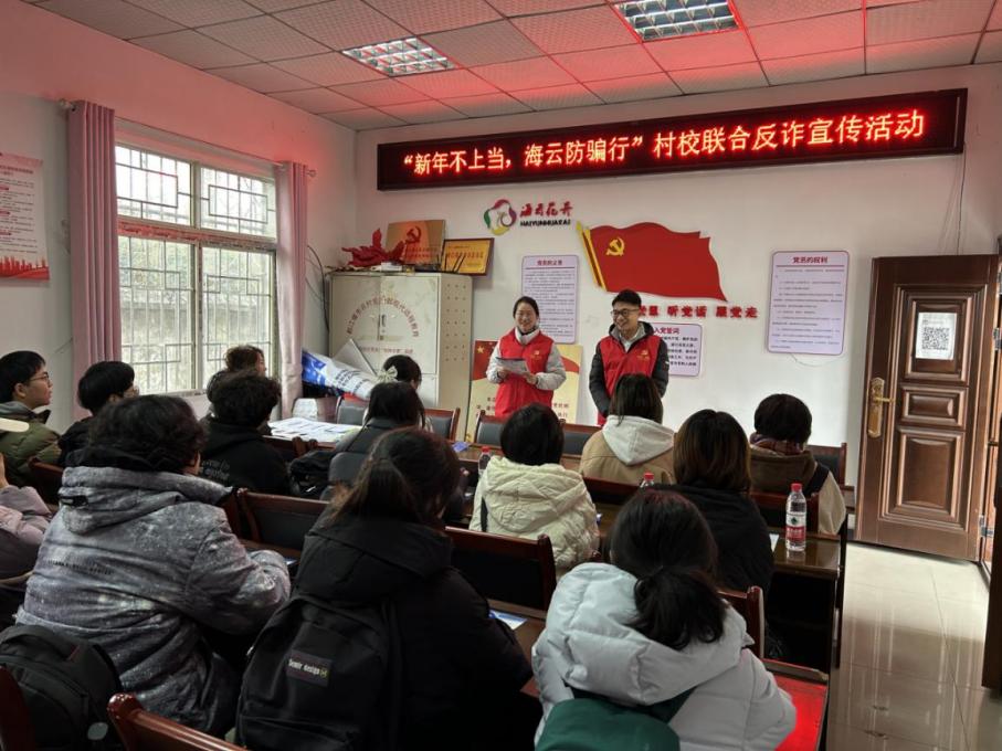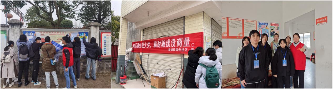在聚源镇海云社区,社区工作的公司优秀员工曹若辰和同事刘博妍,对同学们开展了反诈骗宣传培训,具体讲解了反诈骗宣传的方法技巧,并和同学们一道在社区人群聚集地张贴反诈宣传海报、横幅。他们深入到村庄、田间地头,向村民发放反诈宣传单并讲解防骗知识。通过深入人心的面对面交流,村民们增加了防骗意识和防骗知识,提高了防骗能力。