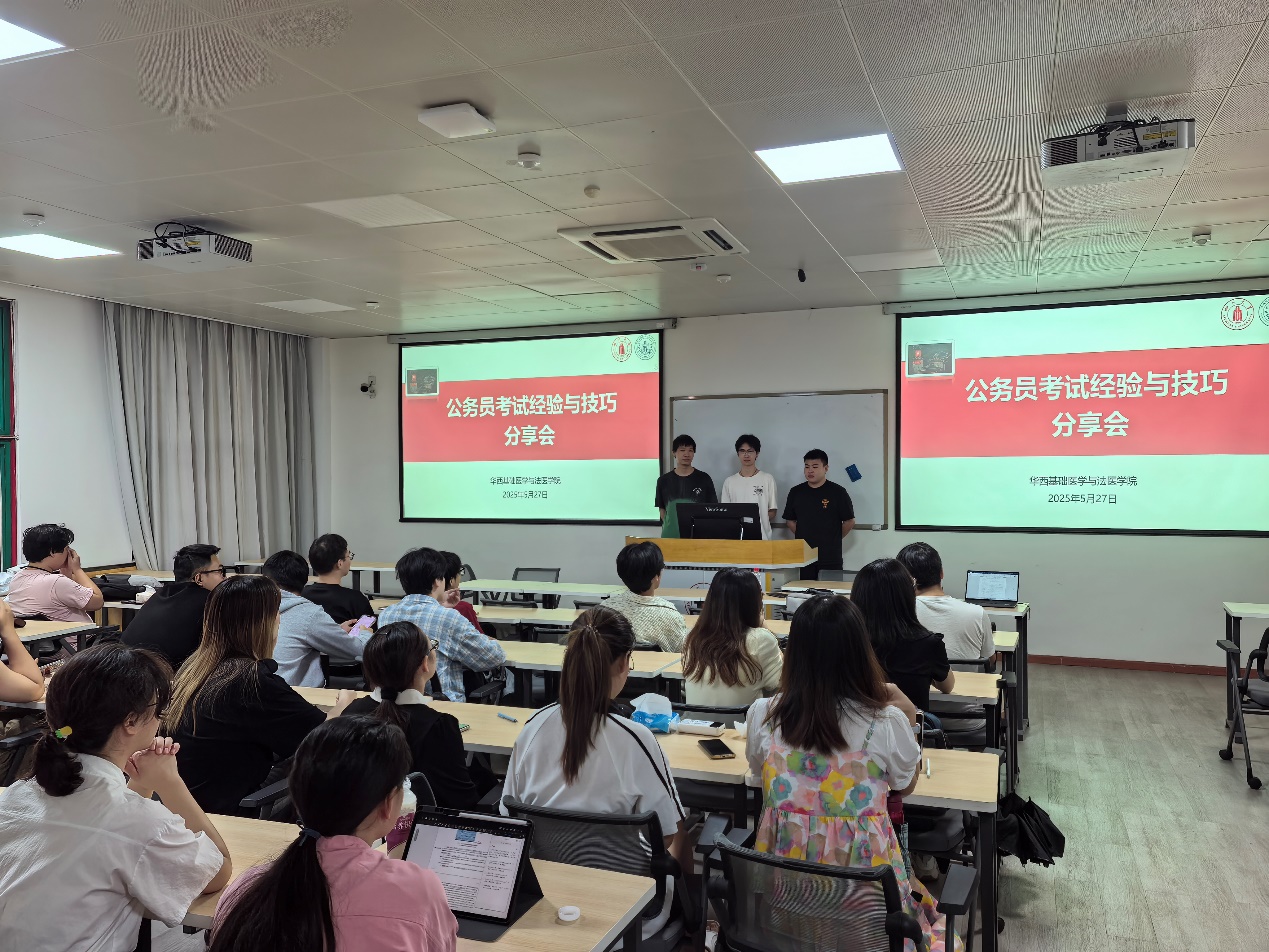 为了帮助同学们明晰公考路径、提升备考效率,充分发挥朋辈引领作用,5月27日下午,公司在华西校区第十教学楼1-3教室开展公务员考试经验与技巧分享会,2021、2022级部分同学参加,辅导员董晓爱、彭铎老师主持。
