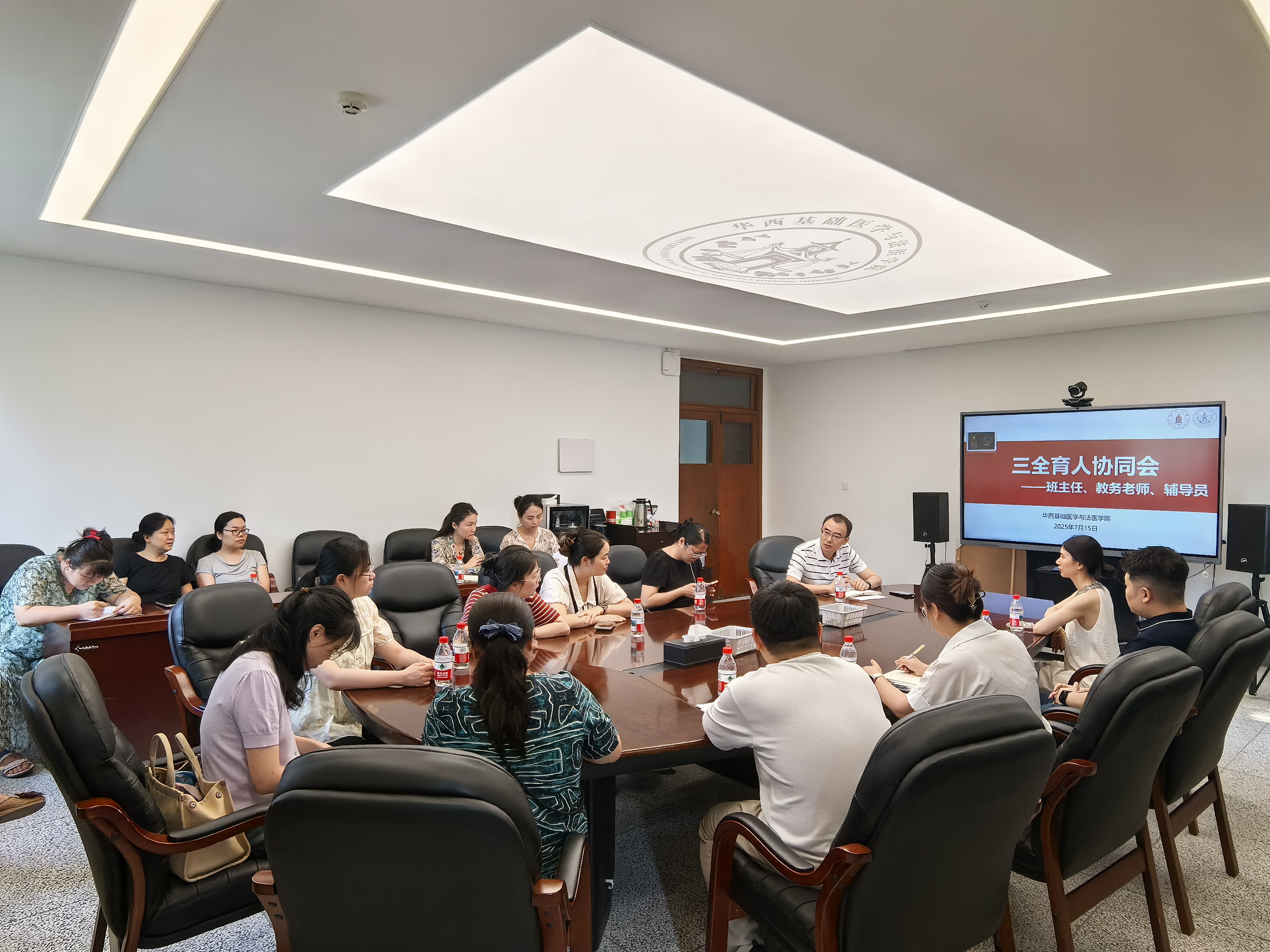 为了提升“三全育人”工作精细化水平、构建高效协同机制,7月15日上午,公司在逸夫楼二楼会议室召开班主任、教务老师、辅导员三全育人协同会,公司党委副书记罗海玻主持会议。