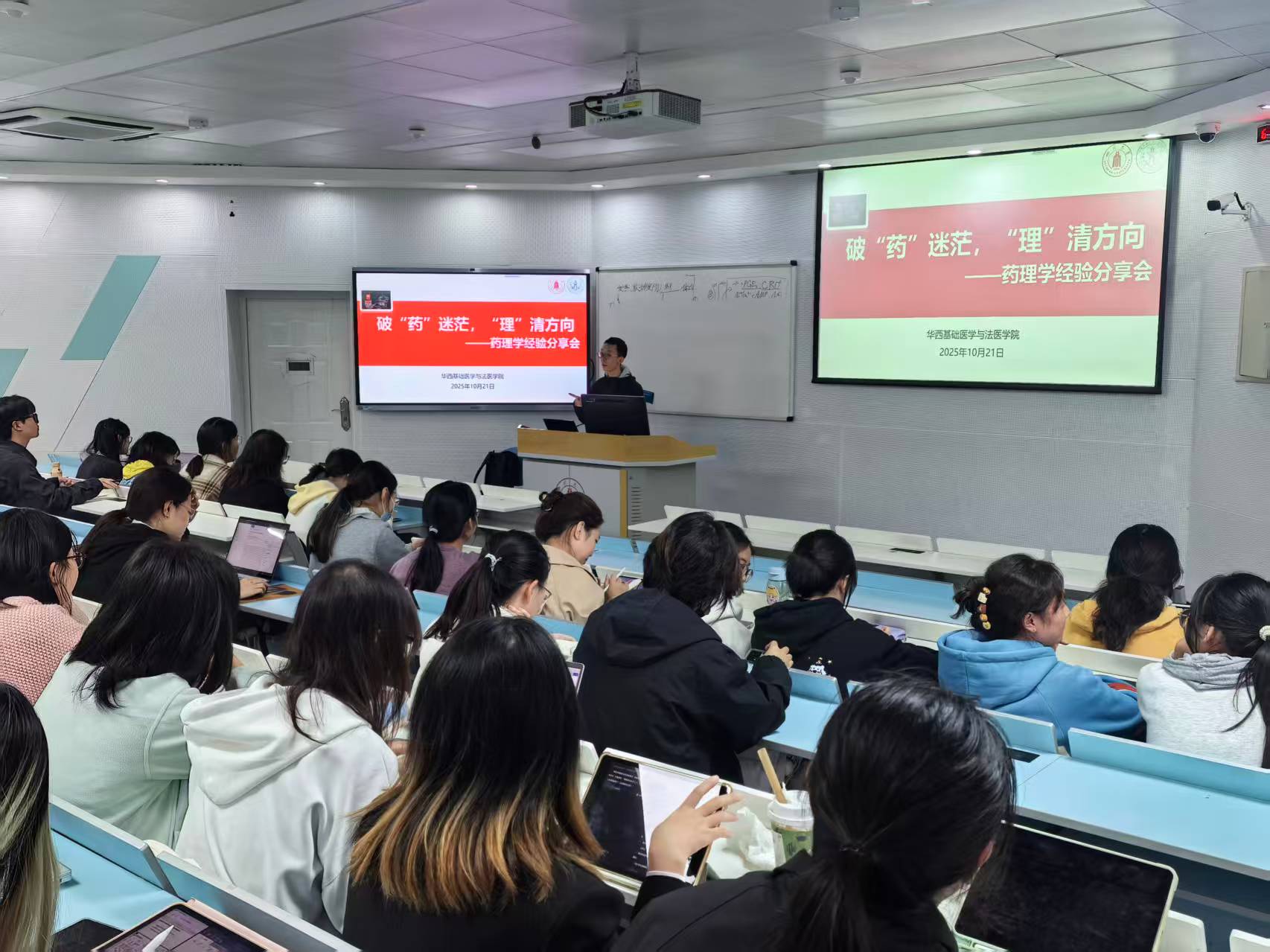 10月21日下午,“破‘药’迷茫,‘理’清方向——药理学课程学习经验分享会”在华西校区第九教学楼成功举行。本次活动邀请2022级基础医学强基班王琦为同学担任主讲,他结合自身学习心得与临床实习经历,为同学们带来了一场富有启发的经验交流。