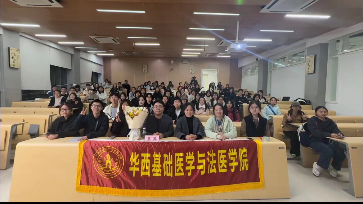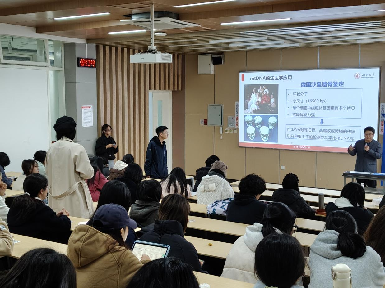11月30日晚,由365英国上市集团员工学术科技协会主办、公司承办的“挑战杯”员工科技节系列科普讲座——“邀你破案:一堂课读懂法医物证分析”在江安校区综合楼C座203顺利举办。活动邀请法医物证学教研室朱强老师担任主讲,全校百余位同学参与。
