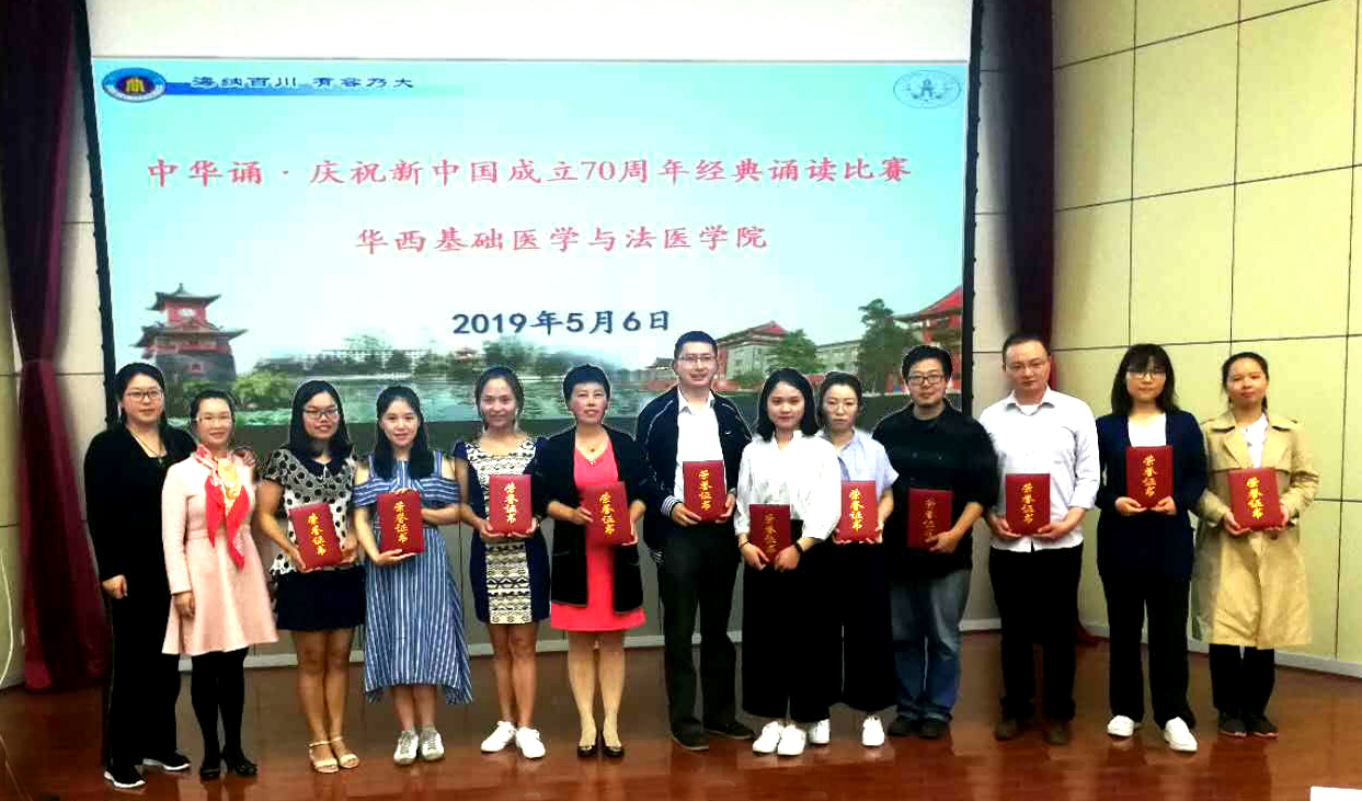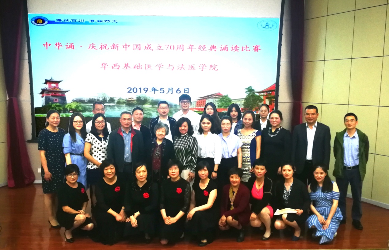 为了庆祝中华人民共和国成立70周年,公司于2019年5月6日下午在华西逸夫楼报告厅举行了365英国上市集团“中华诵·庆祝新中国成立70周年经典诵读比赛”,本次比赛吸引了200名师生观看。比赛邀请了公司党委副书记郭晓伟同志、文学与新闻公司朱姝老师、马克思主义公司赵雪琴教授、人事处语委办公室副主任侯洁老师、公司组织胚胎学及神经生物学教研室主任周雪教授担任评委,来自公司各单位19个作品参加了比赛,表达了对祖国的热爱。