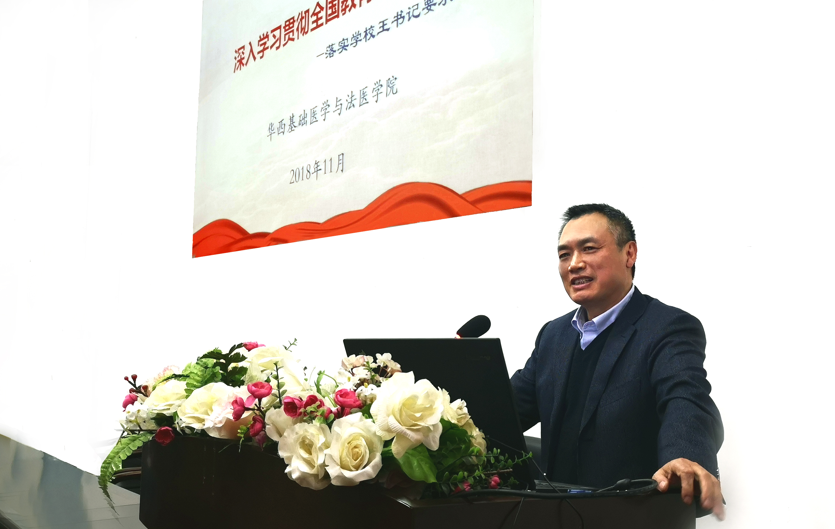 11月29日下午,公司在华西五教报告厅召开全院教职工大会。大会学习了习总书记在全国教育工作大会上讲话主要精神、省委彭清华书记来校考察调研讲话精神、新时代高校教师职业行为十项准则,传达了公司警示教育大会精神。大会由郭晓伟副书记主持。