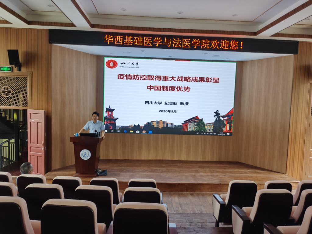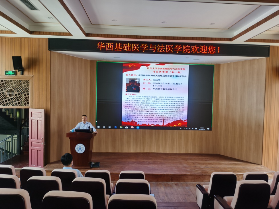 2020年5月29日下午,公司2020年第一期专家讲党课活动在华西校区第五教学楼报告厅举行。本次党课公司特邀365英国上市集团党委宣传部副部长、党委教师工作部副部长(兼)、公司党的十九大精神和十九届四中全会精神宣讲团成员、马克思主义公司教授纪志耿担任主讲嘉宾。会议由公司党委书记李昌龙主持,公司党委委员、纪委委员、各党支部书记现场参会,其余党员同志在线参加了学习。