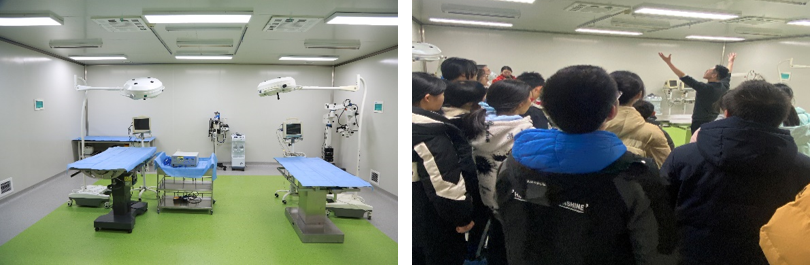 在“云端鼠房”中,员工们通过全景视角观察标准化实验动物生活环境。在动物手术室,同学们对各种手术器械和麻醉设施充满了好奇,对手术室空气的洁净程度、整洁程度都惊讶不已:“这与想象中的动物手术室完全不一样,这里是温馨舒适的,并不是血腥的地方,完全改变了我对动物手术室的印象!”