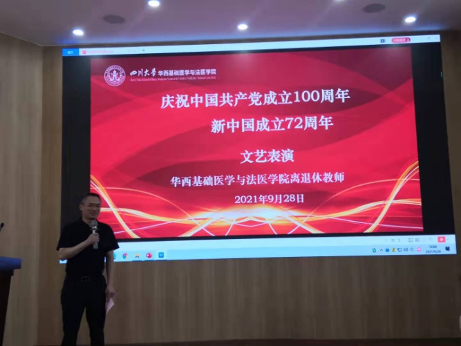 9月28日上午,公司约80名离退休教师在华西五教报告厅欢聚一堂,举行庆祝中国共产党成立100周年暨建国72周年文艺演出,公司党委书记李昌龙参加了活动。