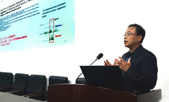 于强教授主要总结了实验室最近有关“表观遗传及肿瘤标志物的基础与转化”的研究。于教授首先强调了科技转化的重要性,指出实验室近几年偏向转化研究,尤其是液体活检技术的开发。该团队主要关注于乳腺癌的研究以及表观遗传调控肿瘤机制,研发出了毒性较小的二代DZNep衍生物,并发现组蛋白甲基化调节Wnt信号通路,DNA甲基化导致靶向治疗耐药。于强教授研究团队还首次发现EZH2对基因表达具有双重调节作用。此外,于教授介绍了有关三阴乳腺癌转化研究的相关工作,强调早期临床管理对三阴乳腺癌患者的重要性。之后,于强教授介绍了液体活检及其与组织活检相比的优点。该团队发现1q21.3在乳腺肿瘤组织中DNA拷贝数增加,是一种重要的乳腺癌复发相关的生物标志物,通过微滴时数字PCR(ddPCR)可检测患者血浆中1q21.3DNA拷贝数。该研究团队还发现,血液动态监测比影像学更早评估肿瘤对药物治疗的反应,通过测量血浆1q21.3拷贝数可以评估化疗反应,并证明1q21.3-IRAK1-S100A8/A9信号通路可作为治疗靶点,靶向药物Pacritinib联合化疗可以减低肿瘤复发。最后,于强教授指出,基于1q21.3在多种肿瘤组织中DNA拷贝数均增加,提出“篮子计划”。最后,于教授提出该团队已发现8个新的基因标志物,可以覆盖90%以上的乳腺癌患者。
