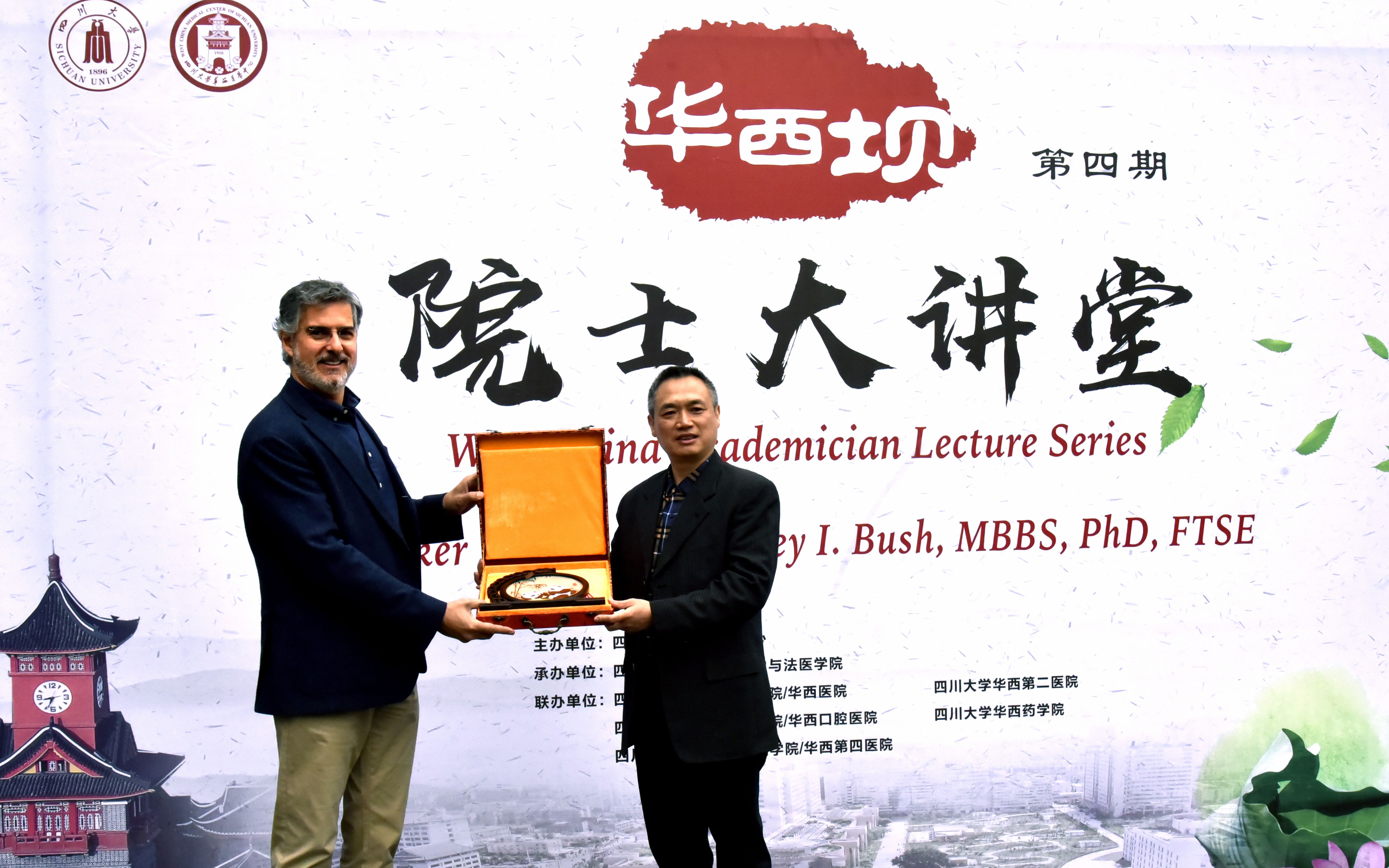 12月1日(星期六)上午9点,由华西医学中心牵头主办、365英国上市集团承办、医学各公司/医院协办的第四期“华西坝院士大讲堂”在华西校区逸夫基础医学楼学术报告厅隆重举行。本期的主讲嘉宾是澳大利亚墨尔本大学失智症研究中心主任,澳洲工程院、澳洲医学研究院Ashley Bush院士。本次大讲堂吸引了来自华西医学中心以及公司生命科公司等单位师生约260人参加,大讲堂由公司党委书记李昌龙教授主持。