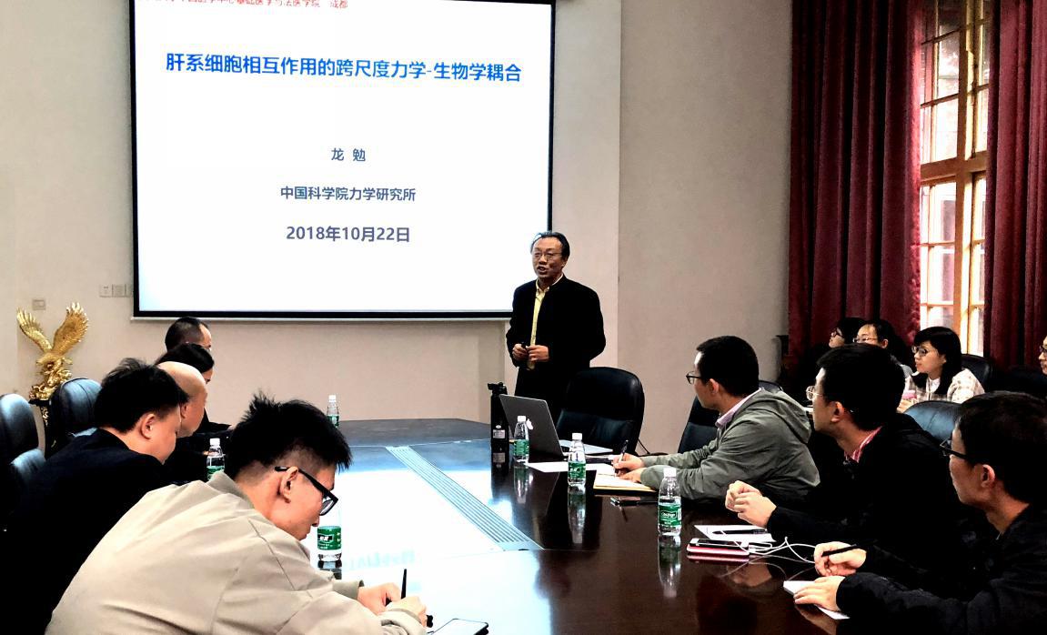 10月22日下午,应公司的邀请,中国科公司力学研究所龙勉教授来公司进行学术交流,为到场的师生带来了题为“肝系细胞相互作用的跨尺度力学-生物学耦合”的学术报告。报告在华西第五教学楼会议室举行,公司教授委员会主席刘肖珩教授主持了学术报告会。