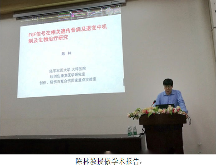 6月12日上午10点,陆军军医大学陈林教授、澳门大学邓初夏教授应公司邀请,来公司进行学术交流,分别以“FGF信号在骨骼发育与损伤中作用与机制研究”、“澳门几种主要肿瘤的建库及癌症精准医学研究”为题,为公司师生做了两场学术报告。报告会在第五教学楼报告厅举行。各教研室教师与员工也参与了此次活动,报告会由李昌龙书记主持。